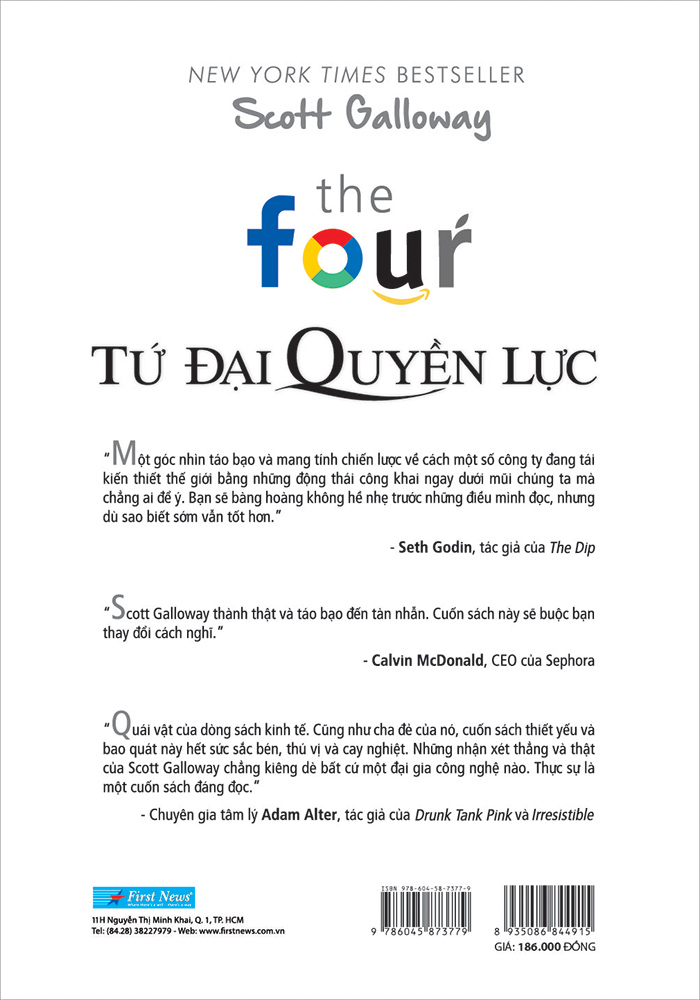 “Đây là quái vật của dòng sách kinh tế. Cuốn sách thiết yếu và bao quát này hết sức sắc bén, thú vị và cay nghiệt. Những nhận xét thẳng và thật của Scott Galloway chẳng kiêng dè bất cứ một đại gia công nghệ nào. Thực sự là một cuốn sách đáng đọc”, Chuyên gia tâm lý Adam Alter, giảng viên ngành tâm lý học tại trường kinh doanh Stern thuộc Đại học New York nhận xét như thế khi đọc xong Tứ Đại Quyền Lực. Đây là cuốn sách đầu tay của Scott Galloway, một giáo sư tại khoa Kinh doanh Stern thuộc đại học New York, phụ trách giảng dạy về chiến lược thương hiệu và tiếp thị số cho các học viên MBA năm thứ hai.