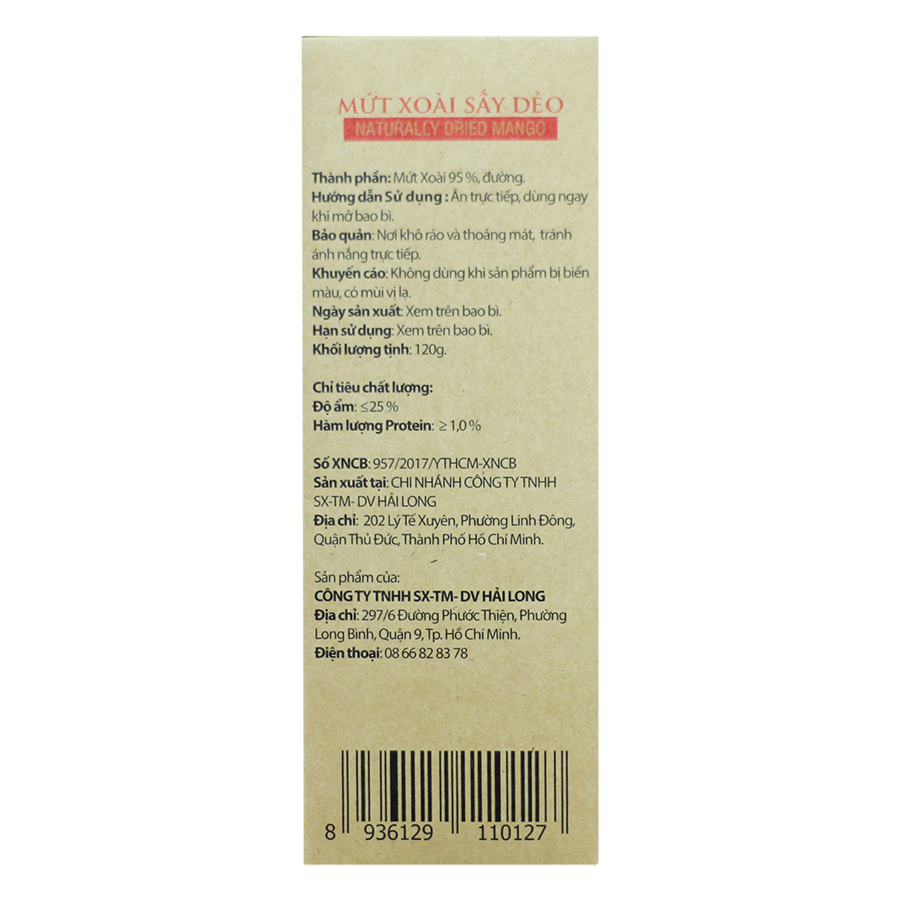 - Combo 4 Hộp Mứt Xoài Sấy Dẻo Hải Long (120g / Hộp) là món ăn vặt được nhiều người ưa chuộng bởi độ dẻo, vị chua chua ngọt ngọt thơm lừng, rất dễ ăn