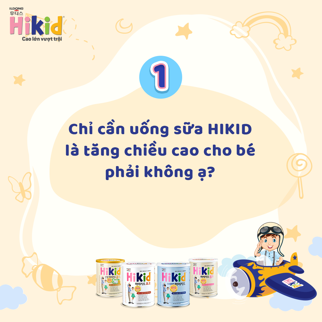Tại sao sữa Hikid lại giúp trẻ phát triển chiều cao vượt trội? Là một người hâm mộ Bác sĩ Anh Nguyễn (Người Việt sống tại Vương Quốc Anh), mình thường xuyên theo dõi những bài chia sẻ rất hữu ích trên facbook của bác sĩ. Mình thấy cũng có rất nhiều mẹ Việt đang theo dõi để học hỏi theo những chia sẻ về chăm sóc con từ những nghiên cứu khoa học mới nhất. Gần đây mình có đọc bài viết của bác sĩ về chủ đề “DINH DƯỠNG ĐÚNG ĐỂ TRẺ TĂNG CHIỀU CAO” rất hay Mình xin trích dẫn một đoạn quan trọng nhất liên quan đến sản phẩm sữa Hàn Quốc bạn đang muốn tham khảo cho con như sau: “Canxi là thành phần chính cấu tạo khung xương. Nên tận dụng nguồn canxi tự nhiên hơn là từ thuốc hay thực phẩm bổ sung vì đó là nguồn hấp thụ tốt nhất và an toàn nhất. Tuy nhiên, cha mẹ cần lưu ý sự hấp thụ canxi luôn cần sự hỗ trợ đầy đủ của vitamin D3 và K2. Nếu không có vitamin D3 thì Canxi sẽ không thể hấp thu từ ruột vào máu, không có vitamin K2 thì canxi từ máu không thể gắn hiệu quả vào xương. Vitamin D3 kích thích nguyên bào xương sản xuất Osteocalcin – một protein có chức năng gắn canxi vào xương. Nhưng Osteocalcin này nếu thiếu vitamin K2 sẽ không thể hoạt động được. Vì thế, việc phối hợp D3 và K2 sẽ giúp canxi được hấp thu và sử dụng hiệu quả tại xương, từ đó giúp trẻ có hệ xương chắc khỏe và tăng chiều cao tốt hơn. Ngoài chế độ ăn uống đa dạng và cân bằng, cha mẹ hãy tạo cho con môi trường ăn uống lành mạnh và vui vẻ, tránh ép trẻ quá mức, hạn chế thức ăn nhanh, đồ ăn chiên rán quá nhiều dầu mỡ, bánh kẹo ngọt, nước ngọt có ga… bởi chúng sẽ gây ra tình trạng béo phì, một sức ép đối với tăng trưởng chiều cao.” Vậy sữa Hikid có đáp ứng được các yêu cầu này không? Câu trả lời là đáp ứng hoàn toàn và còn hơn thế nữa các mẹ cùng xem nhé! Trước tiên là Canxi: Trong sữa Hikid có chứa hàm lượng Canxi cao gấp đôi hàm lượng có trong sữa bò và sữa dê và có khả năng hấp thu tốt hơn rất nhiều so với Canxi thông thường có trong các sản phẩm khác. Từ đó giúp cho hệ xương của bé phát triển, tăng chiều cao tối đa và bảo vệ xương chắc khỏe hơn. Canxi trong sữa Hikid Vani lên đến 600g/100g bột, cao hơn rất nhiều so với các sản phẩm sữa khác. Vitamin D: Hầu hết trong các sản phẩm sữa công thức đều có chứa thành phần Vitamin D3. Trong sữa Hikid hàm lượng và tỉ lệ được tính toán phù hợp với tỉ lệ Canxi từ đó giúp cơ thể trẻ dễ dàng hấp thu tối đa Canxi từ ruột vào máu. Vitamin K: Sau quá trình Canxi hấp thu từ ruột vào máu nhờ Vitamin D3, cơ chế tiếp theo Vitamin K2 sẽ có nhiệm vụ gắn kết Canxi từ máu vào xương. Sự phối hợp nhịp nhàng giữa Vitam D3 và K2 trong sữa Hikid sẽ giúp canxi được hấp thu và sử dụng hiệu quả tại xương, từ đó giúp trẻ có hệ xương chắc khỏe và tăng chiều cao tốt hơn. Không chỉ dừng lại ở đó, trong sữa Hikid Vani tăng chiều cao tăng cân còn có rất nhiều dưỡng chất quý giúp cho bé tăng trưởng và phát triển một cách tốt nhất. Mẹ cùng Sữa Bột Tốt tìm hiểu tiếp nhé! “Chúng tôi xem xét đến tỷ lệ hợp lý theo tiêu chuẩn hấp thụ dinh dưỡng của trẻ em và đưa ra tỷ lệ hợp lý về năng lượng của Carbohydrate, Protein, chất béo và kết hợp với khoáng chất để đem đến cho trẻ nguồn dinh dưỡng cân bằng hợp lý nhất. Với công thức dinh dưỡng có tính đến quy cách WHO/FAO Codex, sữa Hikid là loại sữa bột tốt cho sự tăng trưởng của trẻ.” Việc bổ sung nguồn dưỡng chất mỗi ngày cho bé yêu luôn là vấn đề mà các mẹ hết sức quan tâm. Sữa Hikid vị vani không chỉ thơm ngon, dễ uống mà còn chứa đầy đủ 5 dưỡng chất cần thiết cho tăng trưởng và phát triển đồng đều của bé, cân bằng hỗ trợ trẻ phát triển cao lớn và khỏe mạnh, tăng cường hệ miễn dịch, phát triển trí não và tiêu hóa tốt. Mẹ hãy duy trì cho bé uống từ 2 – 3 ly sữa Hikid mỗi ngày và đo chiều cao của bé sau 4 tháng để thấy được hiệu quả nhé. Đặc điểm nổi bật của sữa bò Hikid vị Vani hộp 600g Không khó để lí giải tại sao Hikid xuất hiện ở Việt Nam cứ lên kệ là lại hết vèo vèo mặc dù giá thành của một lon sữa 600g không hề bình dân, quảng cáo không hề rầm rộ mà đơn giản là vì khách hàng thực sự rất hài lòng. Họ cảm nhận được con họ yêu thích Hikid thế nào, nhận ra sự khác biệt khi con tăng cân đều, tăng chiều cao rõ rệt, tiêu hóa thức ăn tốt và cứ thế các mẹ truyền tai nhau về sản phẩm kì diệu này. Một trong những bí quyết tuyệt vời ẩn chứa bên trong mỗi lon Hikid là thành phần sữa non – một loại sữa đặc biệt, kết dính và có gam màu từ vàng đến cam. Tập đoàn Ildong Food’is Hàn Quốc tiền thân là một tập đoàn Dược với hơn 70 năm kinh nghiệm, họ đã biết cách khai thác và vận dụng sữa non như một công thức đậm đặc về dinh dưỡng có thành phần IGF, TGF rất tốt cho trẻ. Chính bởi