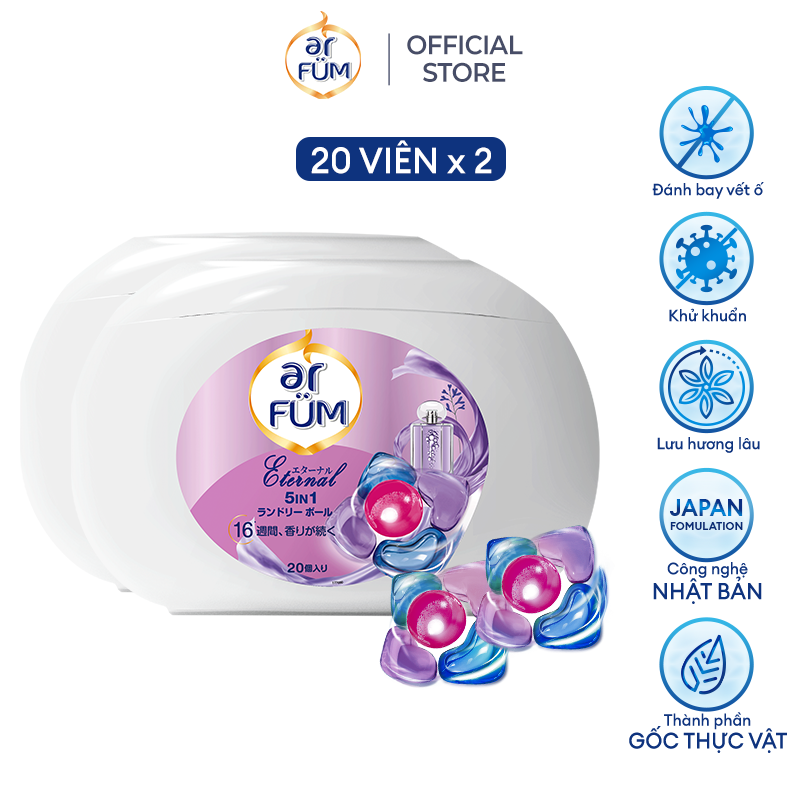 ✨Combo 2 Hộp Viên giặt xả arFum 5 trong 1 MỚI lưu hương lâu 16 tuần, khử khuẩn 99% - 20 viên/ hộp