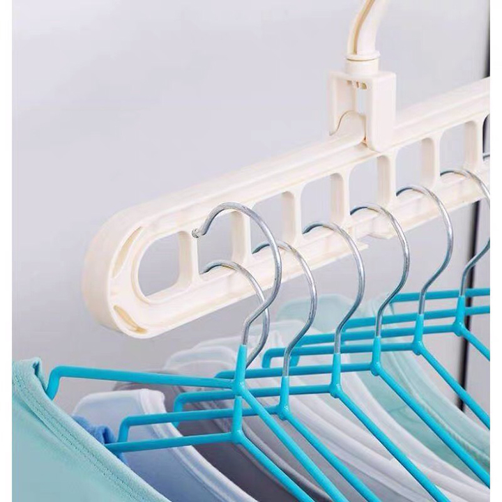 Móc treo quần áo đa năng tiện ích tiết kiệm diện tích (9 lỗ) thiết kế thông minh, tiện lợi treo được 9 móc trên 1 dàn. Treo được nhiều quần áo. Treo ngang treo dọc chỉ cần 1 động tác nhỏ. Chất liệu Nhựa ABS cứng, chịu lực cao. an toàn cho sức khỏe.