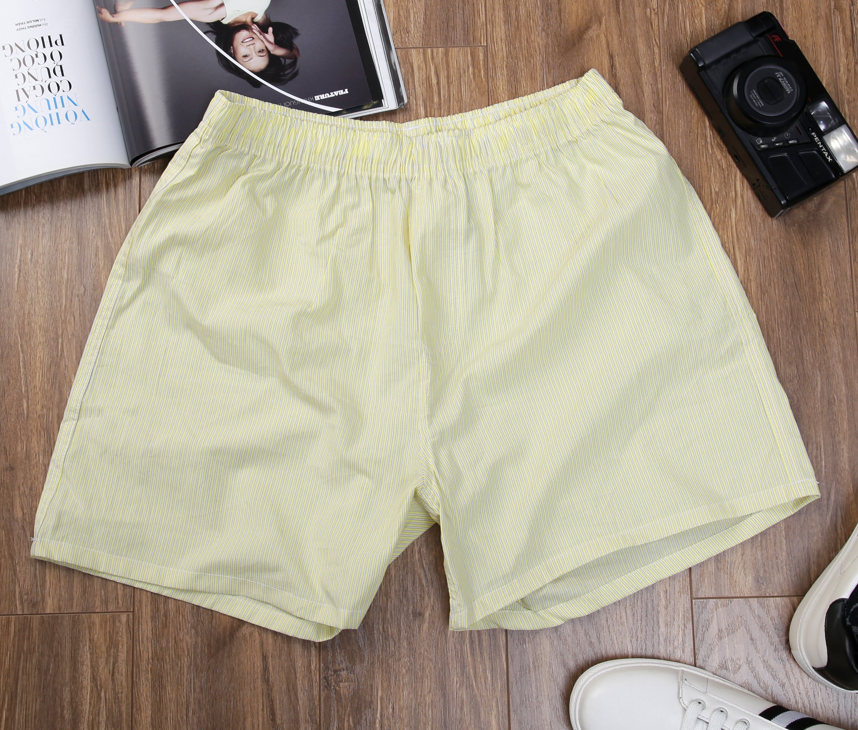 'Quần đùi lưng thun thoải mái cho hoạt động hàng ngày • Họa tiết caro đa dạng • Thấm hút mồ hôi • Thích hợp cho ngày hè nắng nóng. Chất liệu: 100% Cotton, Form
