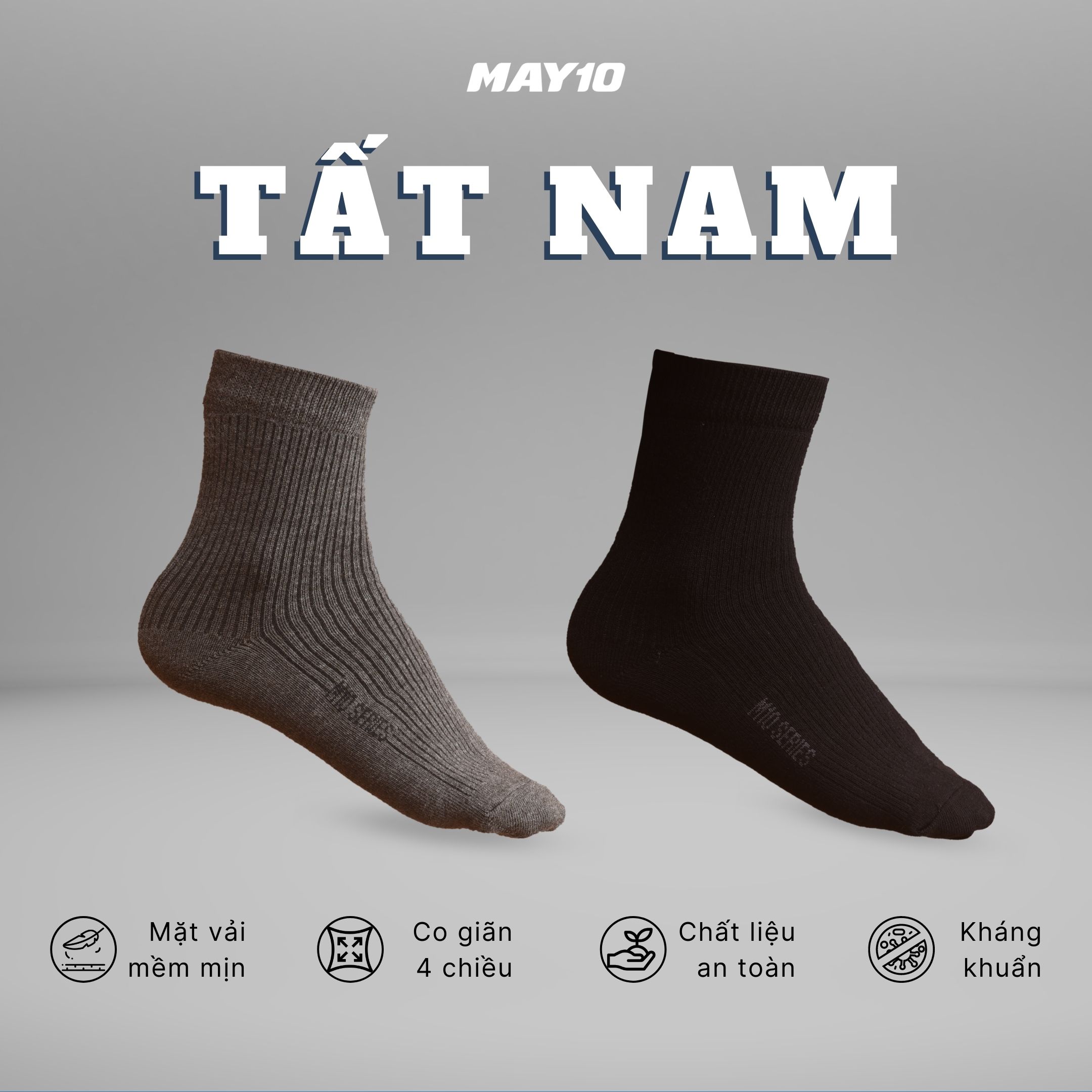 THÔNG TIN SẢN PHẨM TÂT NAM Chất liệu: 50% cotton - 45% poly - 5% spandex Màu sắc: ghi/đen Freesize THÔNG TIN SẢN PHẨM QUẦN LÓT NAM Chất liệu: COTTON Màu sắc: RANDOM Kích cỡ: