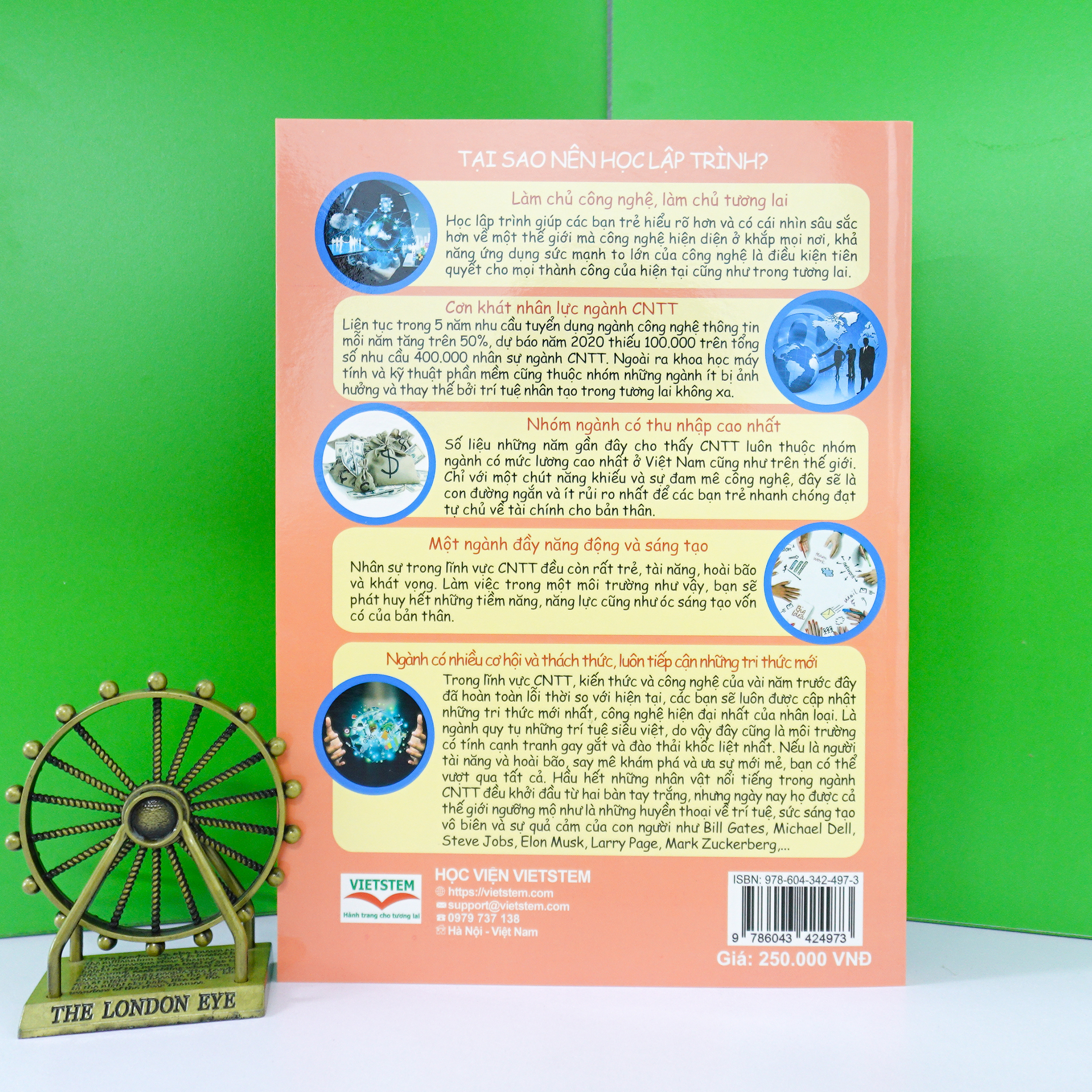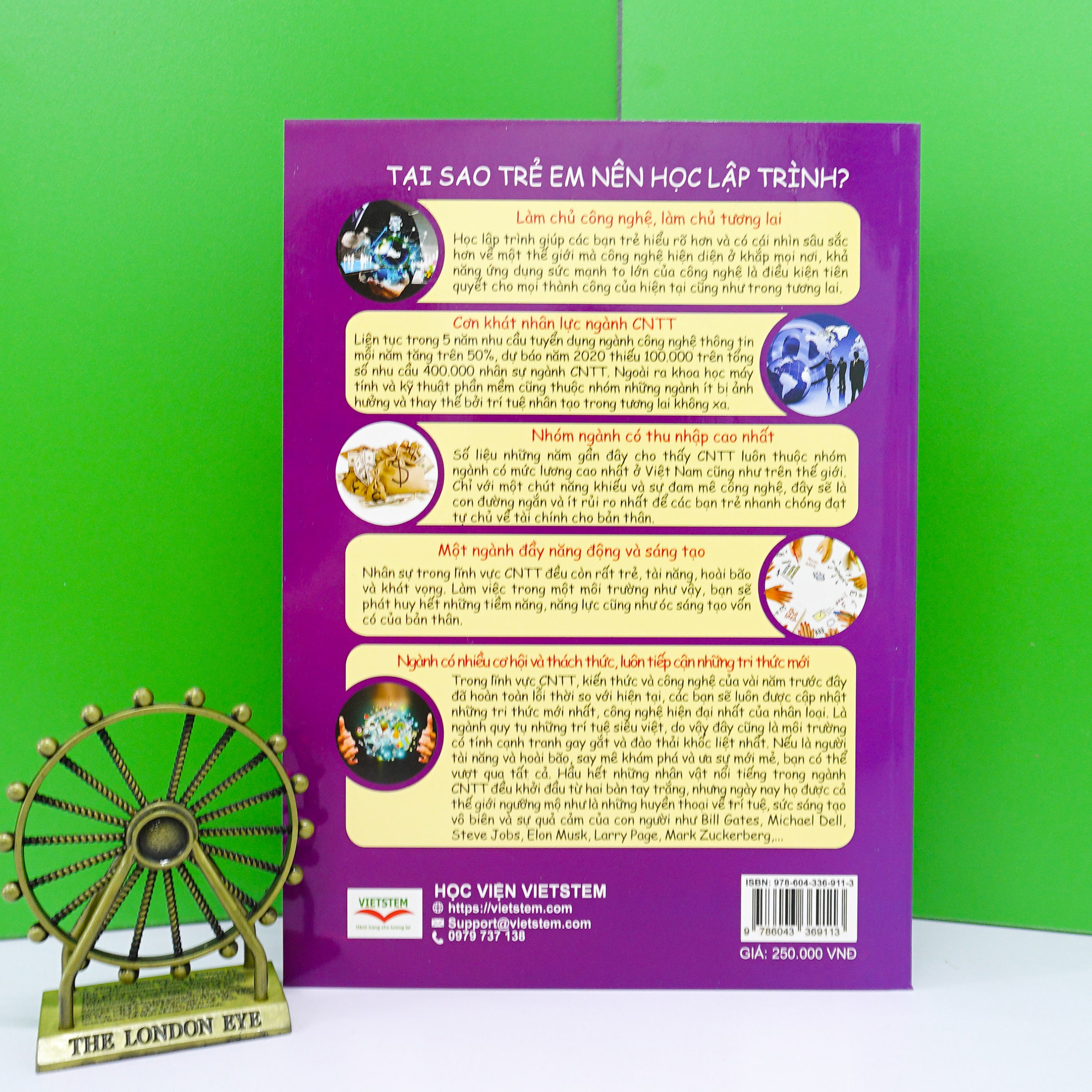 - Học sinh cũng như giáo viên hướng dẫn ôn luyện “Hội thi Tin học trẻ toàn quốc - Bảng B: Thi kỹ năng lập trình cấp Trung học cơ sở”. LỜI CẢM ƠN Chúng tôi xin chân thành cảm ơn cộng đồng giáo viên tin học, các bạn học sinh đã luôn ủng hộ VIETSTEM và đội ngũ tác giả. Những phản hồi tích cực trong thời gian qua là động lực để chúng tôi tiếp tục hành trình tạo ra những sản phẩm ngày một sáng tạo và chất lượng, giúp phổ biến lập trình cũng như phổ biến giáo dục STEM đến mọi học sinh Việt Nam, góp phần tạo nên một thế hệ trẻ yêu công nghệ. Mọi thắc mắc về các sản phẩm của VIETSTEM liên hệ shop để được hỗ trợ và giải đáp. THÔNG TIN SÁCH