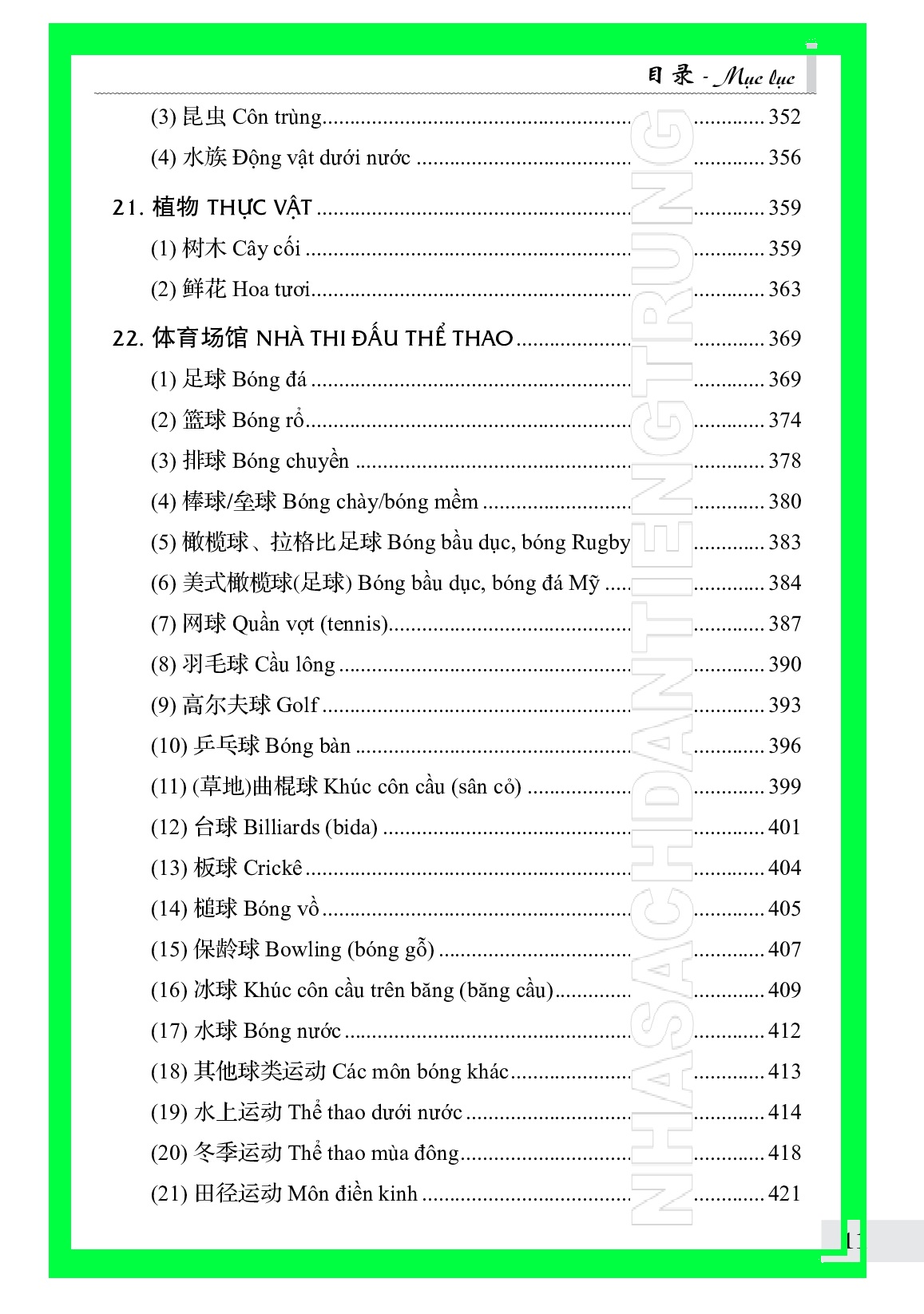 - Có tất cả 58 chủ điểm lớn, phân hơn 200 điểm chủ đề nhỏ bao gồm những thông tin từ vựng về các lĩnh vực khác nhau của đời sống xã hội: từ các thông tin có liên quan đến đời sống thường ngày về nơi ở, nơi làm việc, nơi công cộng, nơi vui chơi giải trí đến các lĩnh vực chuyên môn như kinh tế, tài chính, du lịch, kỹ thuật, thể thao, văn hóa, tôn giá, cho đến các tổ chức thuộc cơ cấu xã hội như bệnh viện, tòa án, nhà tù, quân độ, - Lượng từ vựng hết sức phong phú, có nhiều thuật ngữ chuyên môn, lại được cân nhắc, chọn lọc cho phù hợp với đời sống văn hóa xã hội của nước ta.