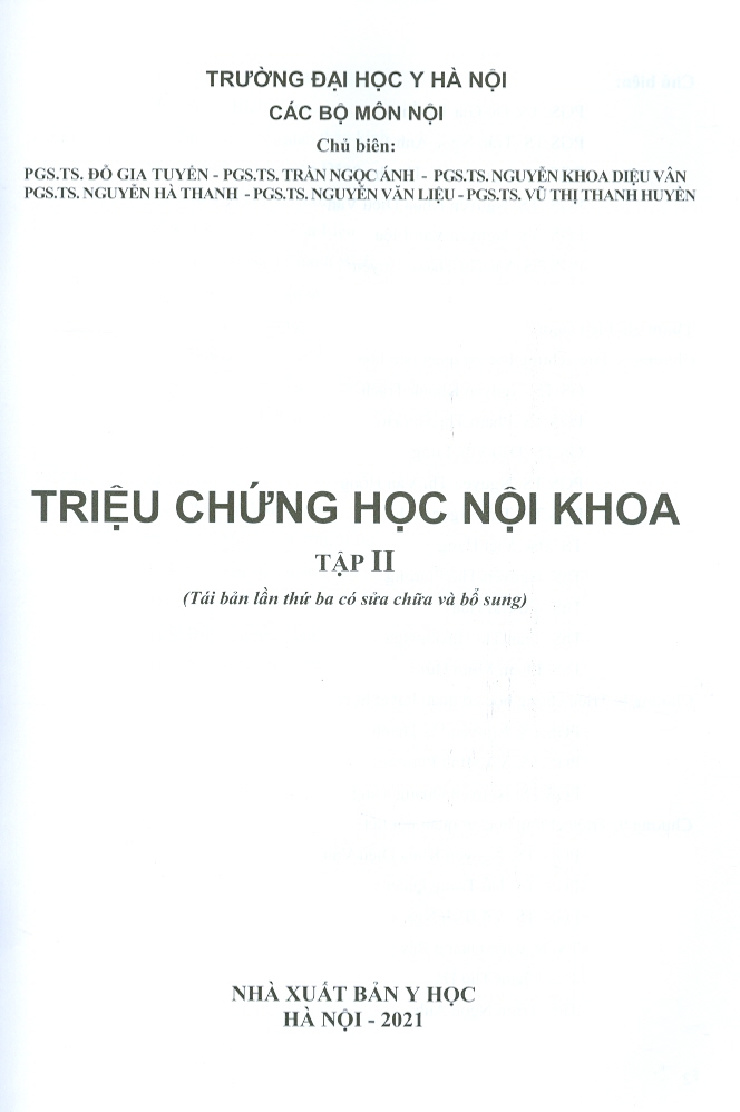 Sách Triệu chứng học nội khoa được xuất bản lần này bao gồm hai tập, do tập thể các giáo sư, bác sĩ giảng viên của các bộ môn: Nội tổng hợp, Tim mạch, Hồi sức cấp cứu, Huyết học, Thần kinh, Lão khoa của Trường Đại học Y Hà Nội biên soạn.