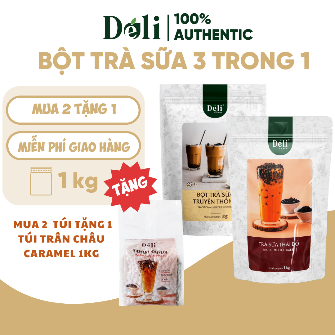 ✨Combo 2 Túi Bột trà sữa thái đỏ + truyền thống 3in1 Déli - 1kg pha chế trà sữa tiện lợi, nhanh chóng