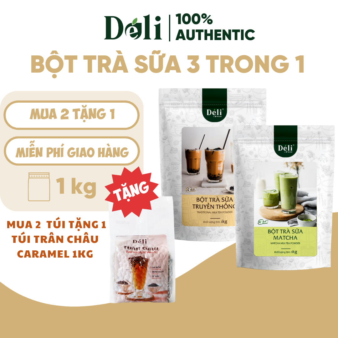 ✨Combo 2 Túi Bột trà sữa vị matcha + truyền thống 3in1 Déli - 1kg pha chế trà sữa tiện lợi, nhanh chóng
