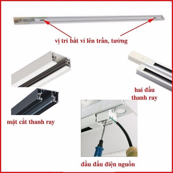 - Đèn sử dụng thanh ray, chiều dài thanh ray 1m, và 1m5 tùy theo nhu cầu sử dụng của shop