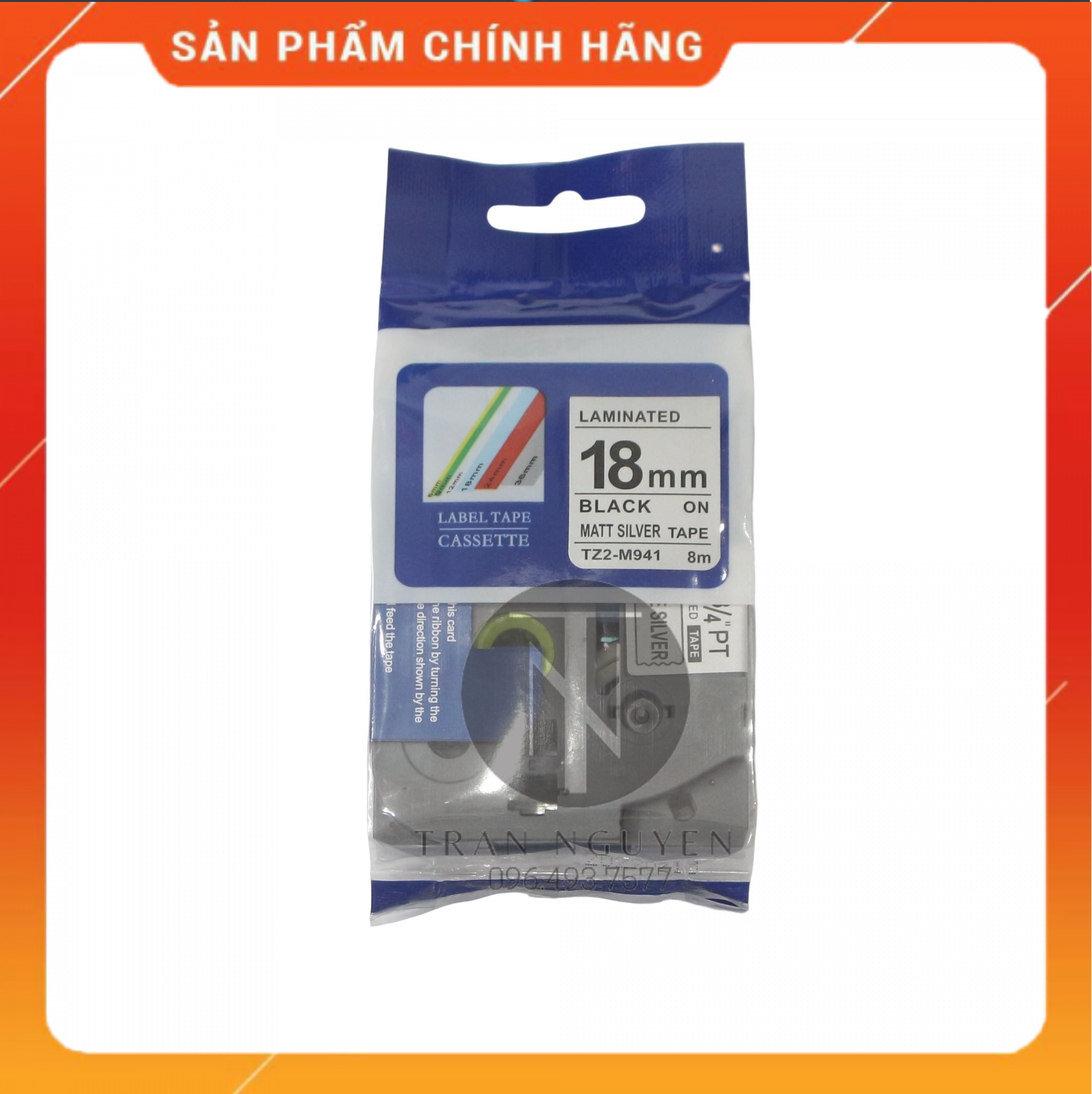 ✨[Combo 3 hộp] Nhãn In đa lớp Tz2-m941 - Đen nền bạc 18mm x 8m - Hàng nhập khẩu