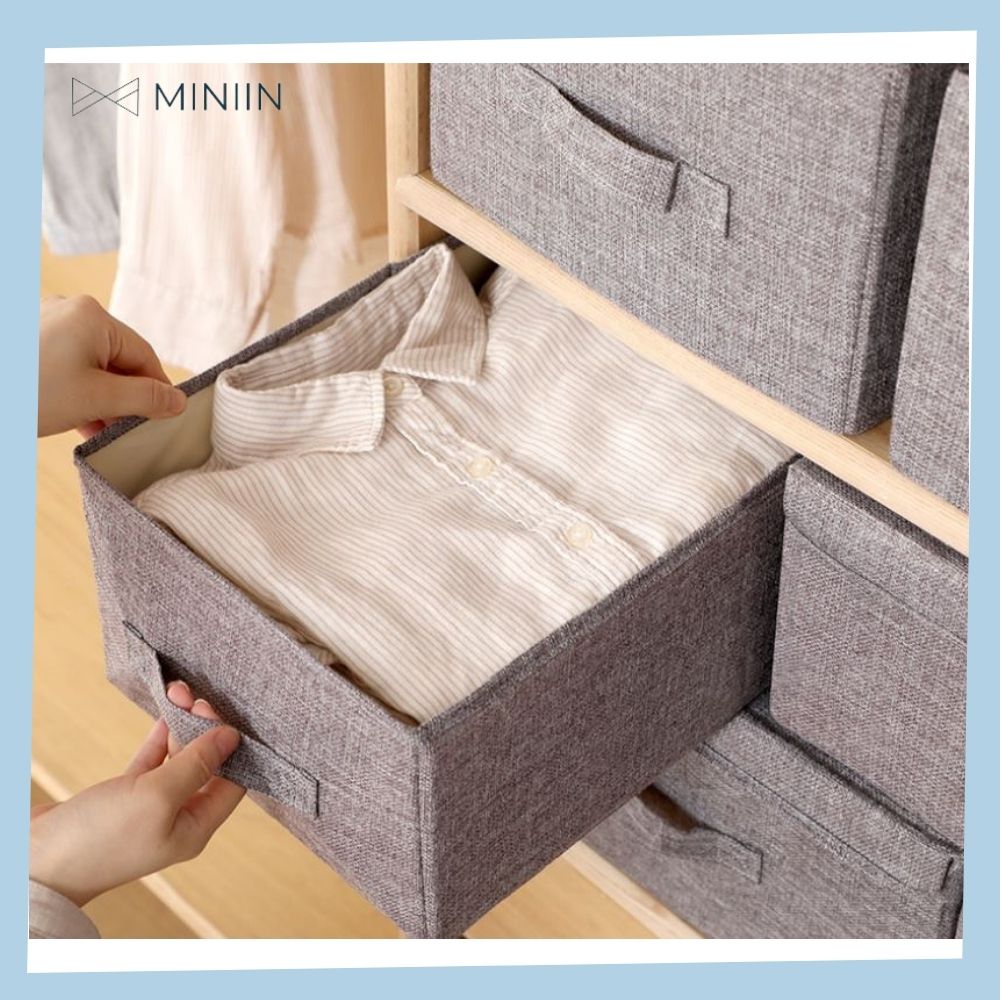 Combo 3 Hộp Vải Đựng Đồ Dùng Đa Năng – Túi Vải Thụy Điển Không Nắp Bộ 3 Chiếc Sang Trọng, Đẳng Cấp - Tiện Ích - Hàng Chính Hãng MINIIN   Combo 3 hộp đựng đồ cao cấp xuất Nhật (38x25xH25cm). Made in Viet Nam Đựng sách báo, quần áo, đồ chơi trẻ em, trang trí phòng khách, dễ dàng phân loại tuỳ vào mục đích sử dụng khác nhau. Tiết kiệm không gian sinh hoạt và làm việc. Phù hợp với mọi nhu cầu cất chứa đồ đạc trong gia đình cũng như nơi công sở Là vật dụng giúp tối ưu không gian sống và sinh hoạt gọn gàng ngăn nắp Lưu ý: Không giặt hộp. Làm sạch hộp bằng cồn Vệ sinh vết bẩn bằng bàn chải ướt và bột giặt, chà trực tiếp lên vết bẩn và phơi khô. Khi đi đâu xa, bạn có thể dùng hộp đựng đồ cá nhân hay đồ ăn khô cất sau cốp xe ô tô. Là hộp đựng đồ có tính năng thông minh, tiện ích. Tiết kiệm không gian sinh hoạt và làm việc. Phù hợp với mọi nhu cầu cất chứa đồ đạc trong gia đình cũng như nơi công sở Là vật dụng giúp tối ưu không gian sống và sinh hoạt gọn gàng ngăn nắp Màu sắc trung tính sang trọng: Ghi xám, Vàng Kem, Nguyên liệu sản xuất: Nonwoven Fabric, hạn chế thấm nước, vải không dệt không bị bung chỉ như các hàng trôi nổi trên thị trường.  Tay cầm xinh xắn 2 bên hông sản phẩm giúp bê mang đồ dễ dàng. Lõi sản phẩm nén ép công nghệ cao, giúp thùng đồ dáng đứng không cong vênh, dập gẫy khi dùng.  Bộ 3 chiếc/ 1 đơn hàng tiết kiệm chi phí, tối ưu giá trị sử dụng sản phẩm.  Sản phẩm dùng để đựng đồ phòng ngủ như Chăn màn, Quần áo, Đồ lót, Phụ kiện gia đình, hoặc giấy tờ văn phòng, giấy tờ hành chính công sở; đồ chơi trẻ em đều rất phù hợp.