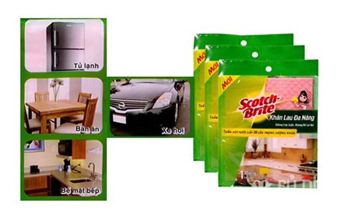 - Khăn lau đa năng Scotch-Brite có thể lau sạch vết bẩn trên mọi bề mặt, thấm hút hiệu quả vượt trội