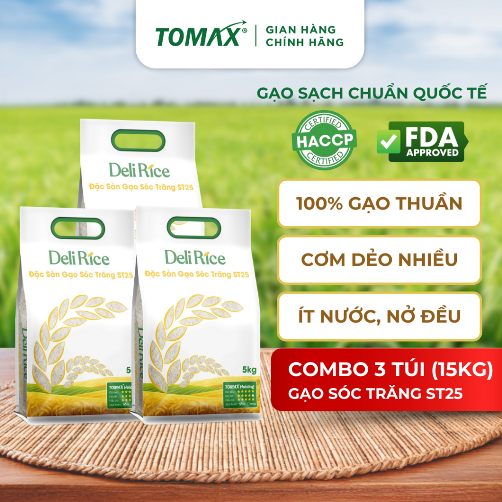 COMBO 3 TÚI 5KG GẠO HỮU CƠ ST25 Tomax THƯỢNG HẠNG, DẺO THƠM - TOMAX