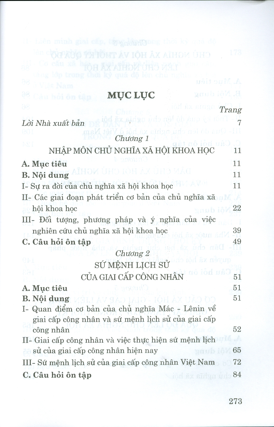 Giáo trình nhằm giúp sinh viên, học viên nắm được những tri thức cơ bản, cốt lõi nhất, mở rộng và chuyên sâu về Chủ nghĩa xã hội khoa học, một trong ba bộ phận cấu thành chủ nghĩa Mác - Lênin; từ đó nâng cao hiểu biết thực tiễn và khả năng vận dụng các tri thức nói trên vào việc xem xét, đánh giá những vấn đề chính trị - xã hội của đất nước liên quan đến chủ nghĩa xã hội và con đường đi lên chủ nghĩa xã hội ở nước ta; nắm chắc và vận dụng thành thạo những kiến thức đã học vào công việc giảng dạy của cá nhân sau khi ra trường.