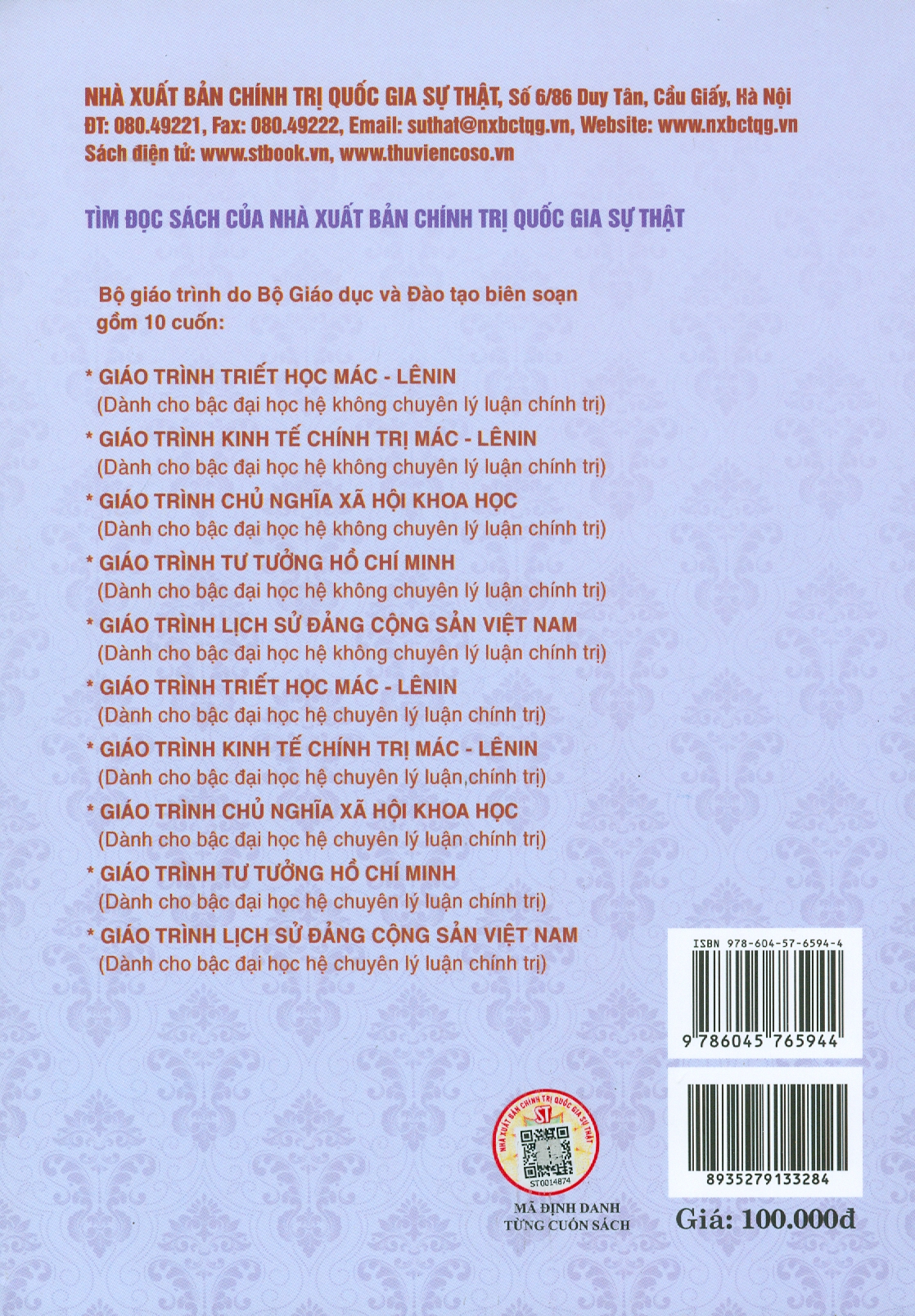 Bộ giáo trình lý luận chính trị gồm 5 cuốn dành cho bậc đại học hệ không chuyên lý luận chính trị.