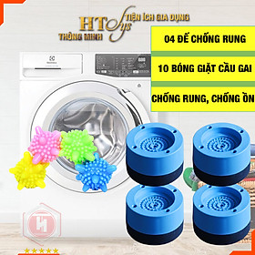 ✨COMBO 4 ĐẾ CHỐNG RUNG MÁY GIẶT + 10 BÓNG GIẶT CẦU GAI QUẦN ÁO HT SYS