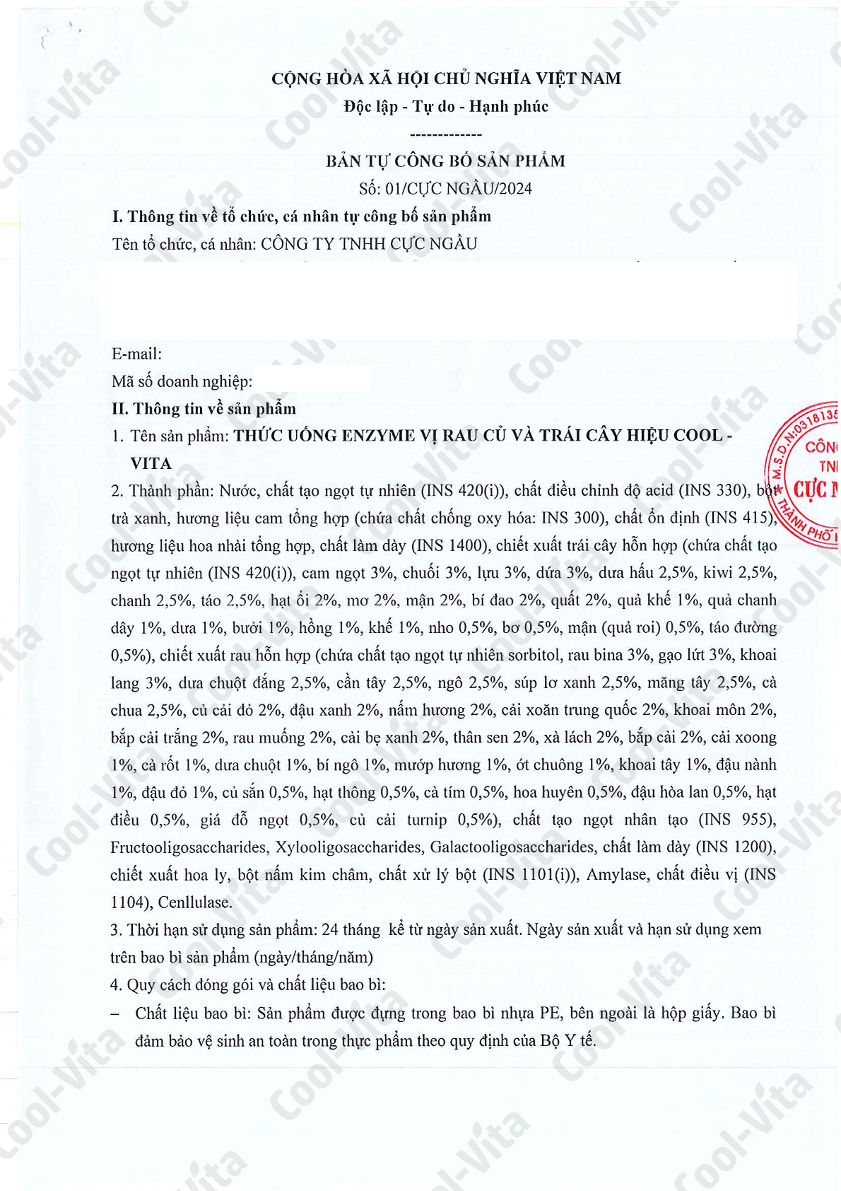 Nước uống Enzyme Cool-Vita được chiết xuất từ các loại trái cây rau quả đã được chế biến thành Enzyme và chứa prebiotic fos, gos và xos giúp tăng khả năng miễn dịch và cải thiện sức khỏe tiêu hóa để thức ăn và khoáng chất được hấp thu tốt hơn.