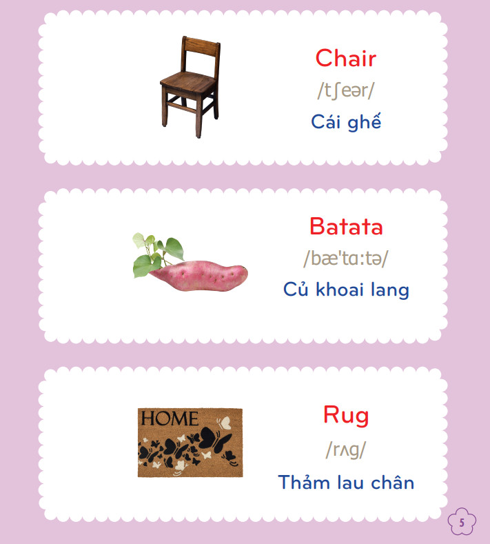 Từng trang sách với hình ảnh chân thực, sống động sẽ cho bé những kiến thức và bài học thật bổ ích về 5 chủ đề quen thuộc, từ đó giúp bé ghi nhớ một cách hiệu quả và tự nhiên nhất.