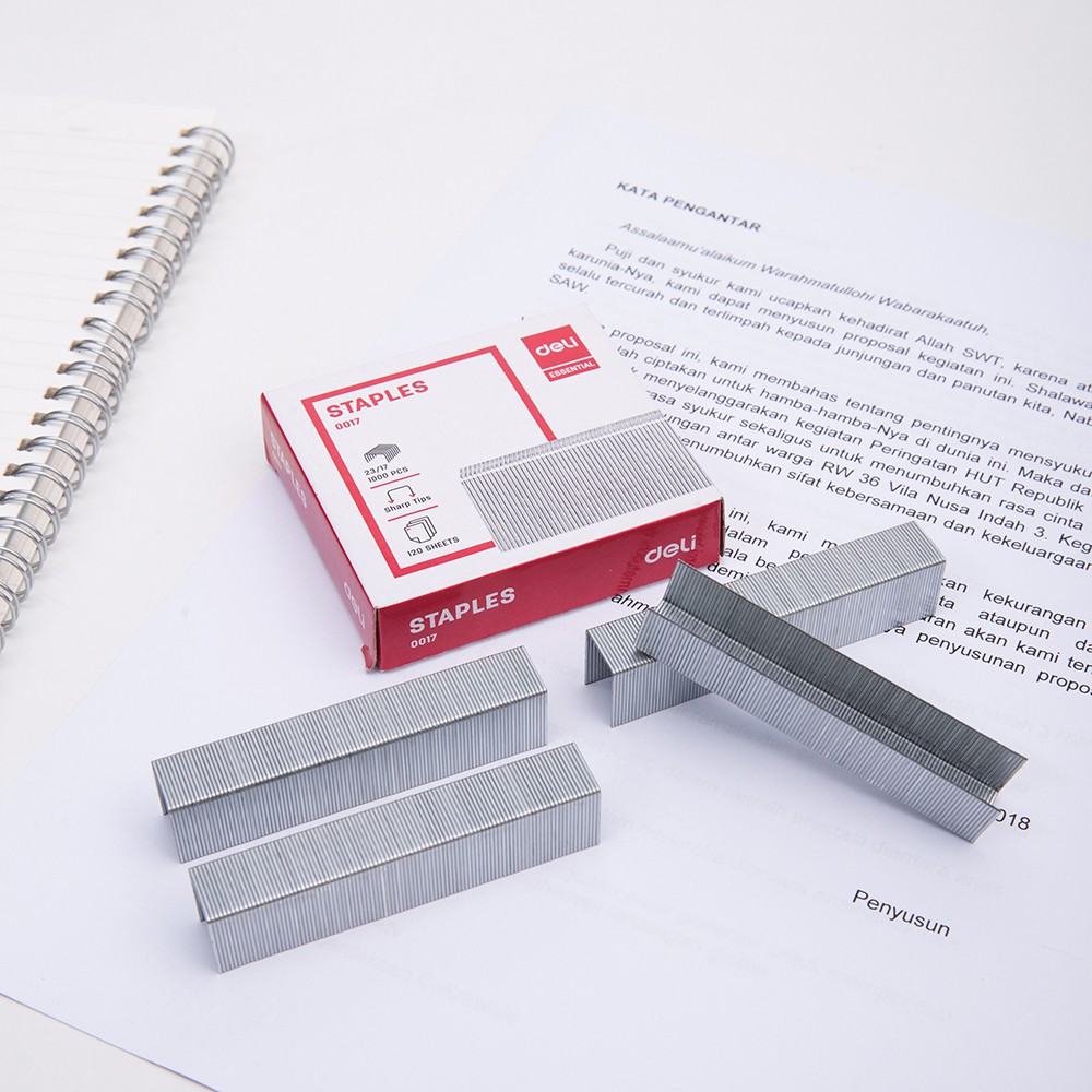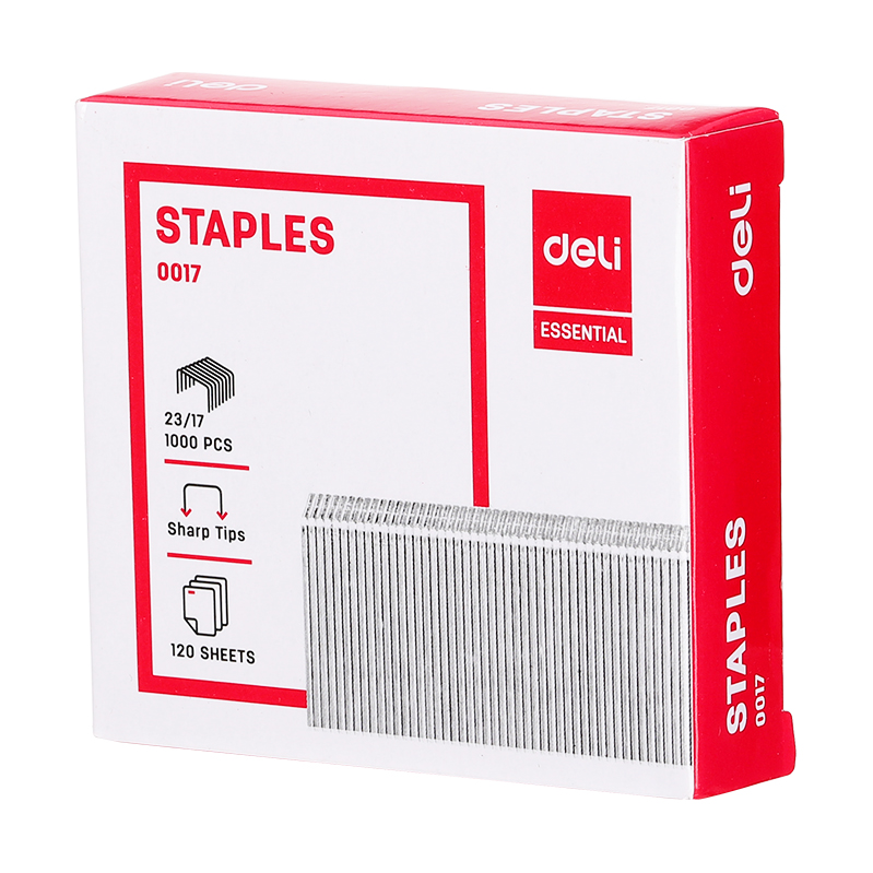 Combo 5 Hộp Ghim Dập Deli 23/17 Dập được 120 tờ Màu bạc Mã 17 là sản phẩm thiết yếu được sử dụng rộng rãi trong các văn phòng, cửa hàng photocopy. Sản phẩm giúp kẹp chặt, đóng gọn các giấy tờ, văn bản vào làm một rất đơn giản, dễ dàng mà không cần tốn quá nhiều thời gian, công sức.