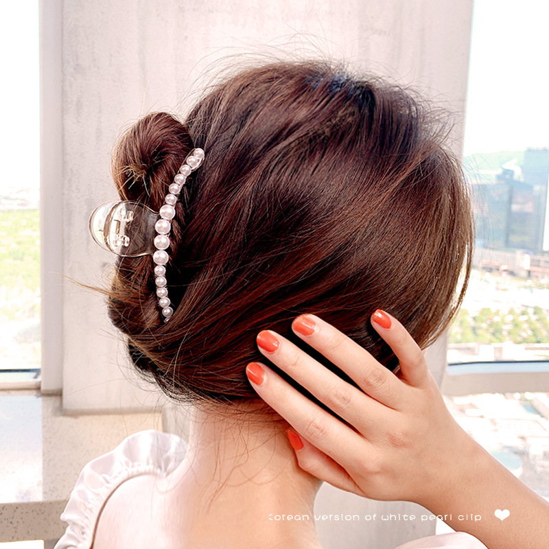 Kẹp càng cua, dây buộc tóc đính ngọc trai là món phụ kiện tóc rất được yêu thích trong một năm đầy biến động vừa qua. Khi học tập và làm việc đều thông qua những cuộc gọi trực tuyến, các cô gái có thói quen sử dụng kẹp càng cua, dây buộc tóc tiện lợi để giữ cho mái tóc luôn gọn gàng, thoải mái.