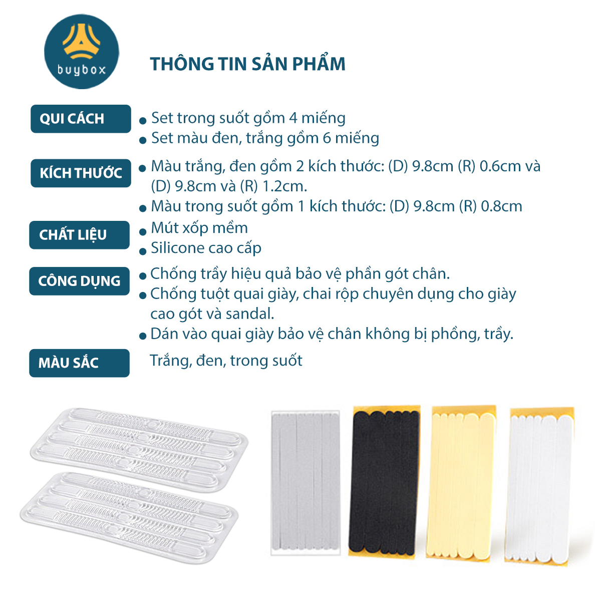 ✨Combo 5 Miếng dán chống trầy gót chuyên dùng cho sandal, giày cao gót chất liệu EVA, silicone cao cấp - Buybox - BBPK282