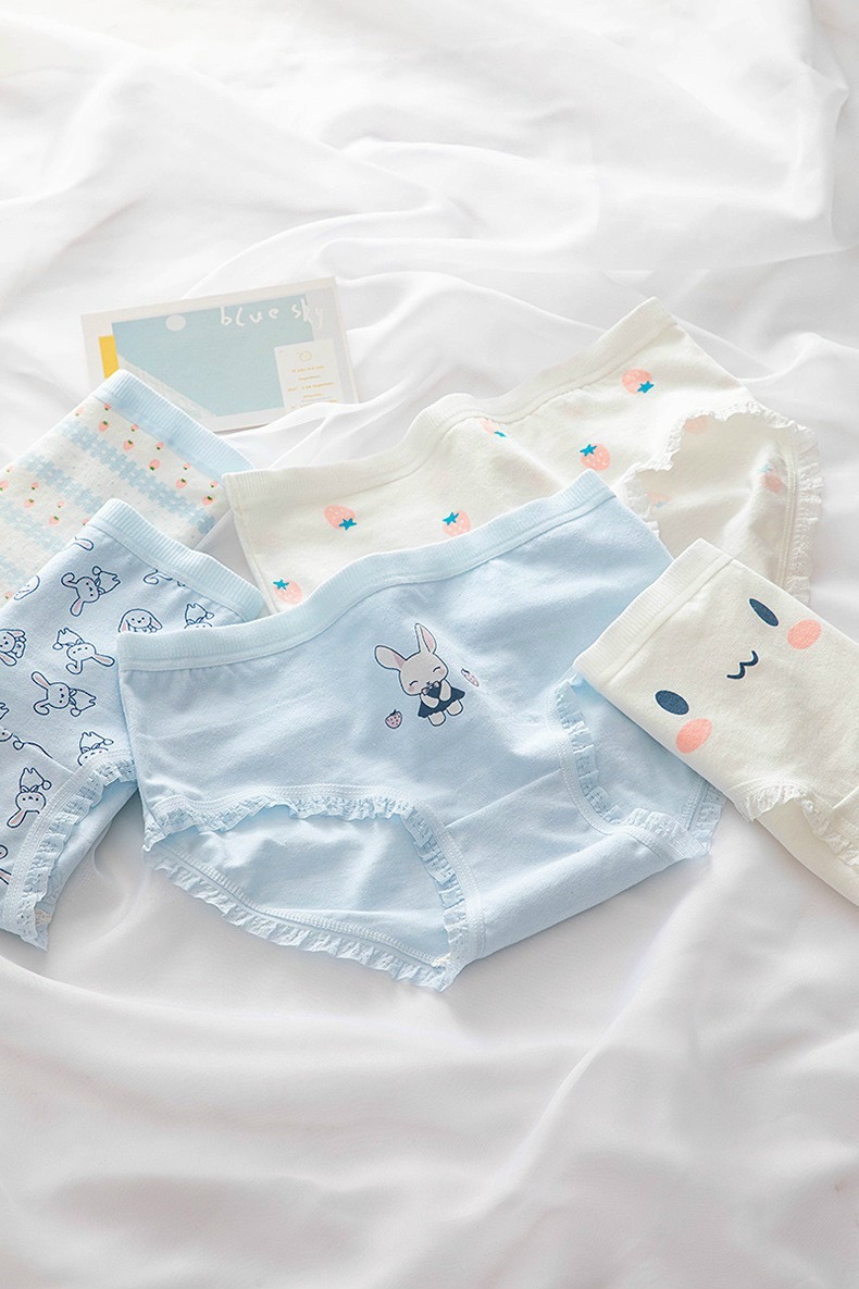 ✨Combo 5 quần lót nữ cotton dễ thương Freesize - Kiểu Thỏ xanh (giao màu ngẫu nhiên)