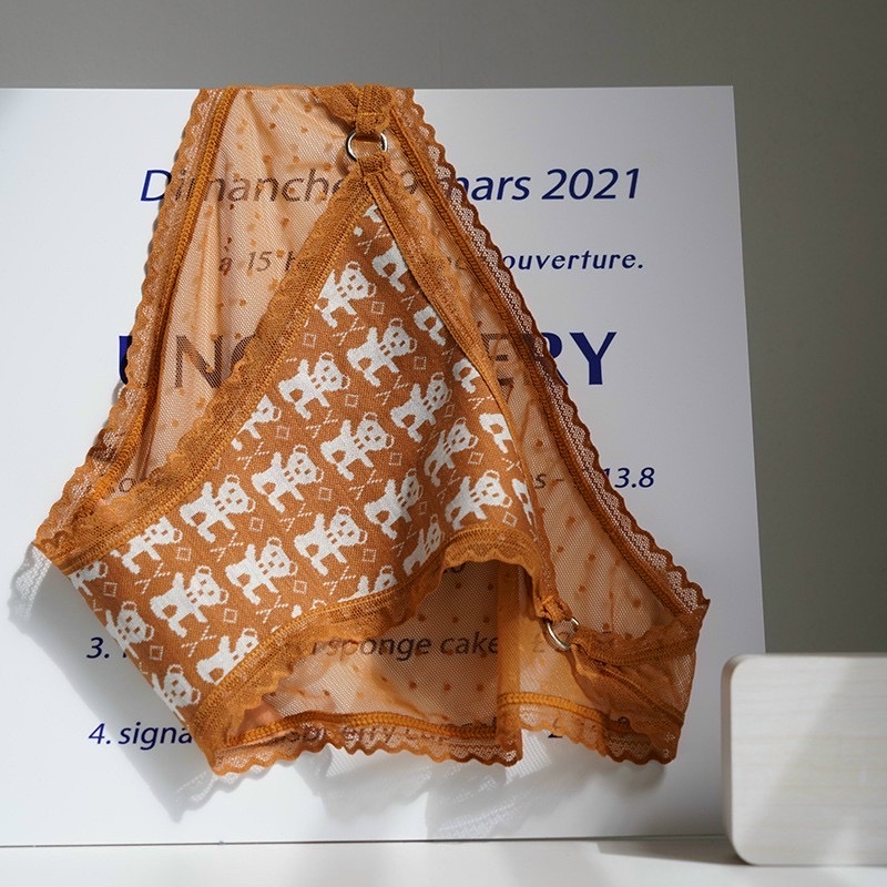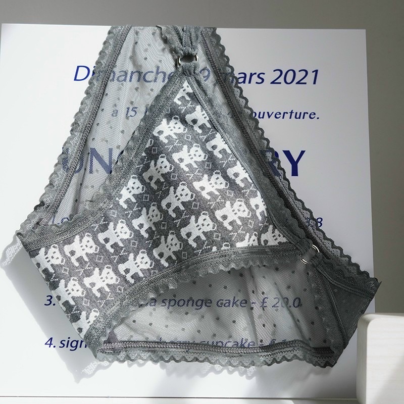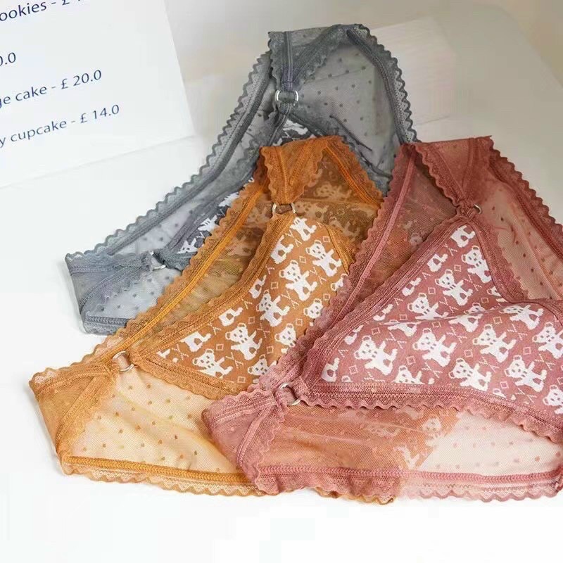 ✨Combo 5 quần lót nữ thun dệt in hình gấu phối ren 409 – Co giãn 4 chiều, siêu mềm mại