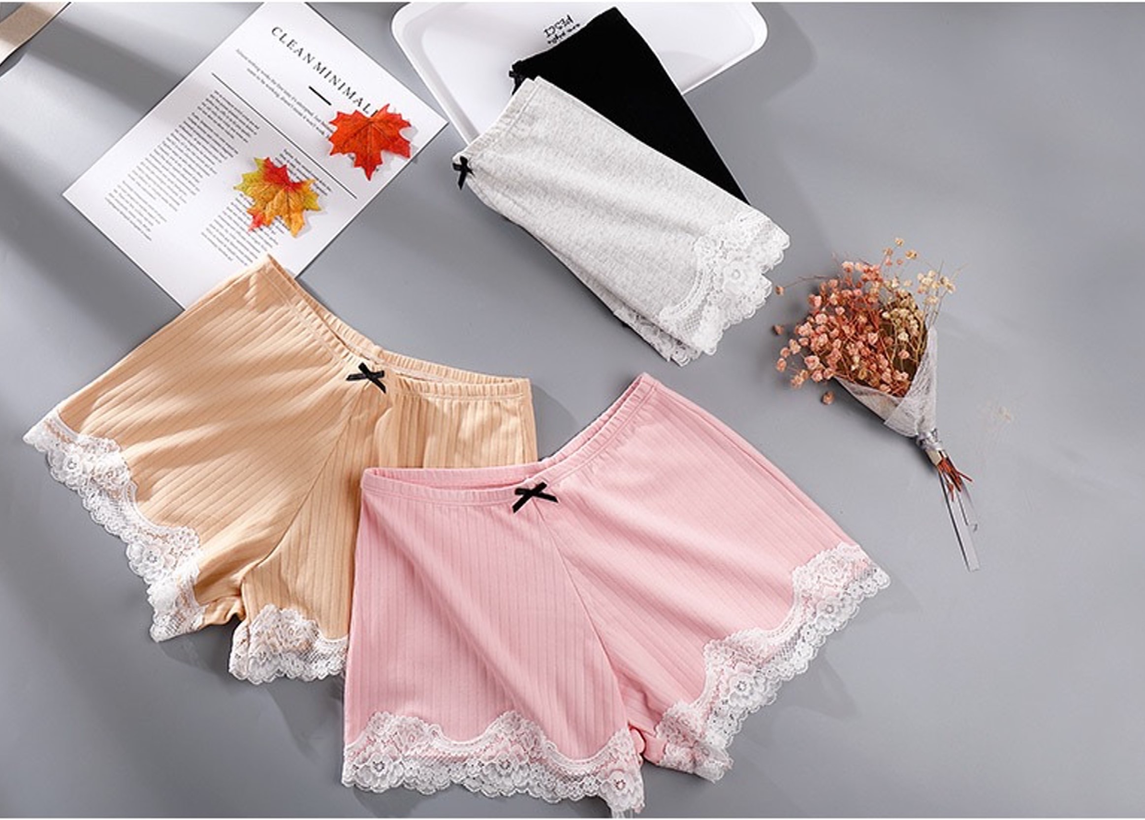 Combo 5 Quần Lót Nữ Quần Váy Cotton Tăm Viền Ren 044 – Mềm Mại, Thoáng Khí, Quyến Rũ Mô Tả Sản Phẩm Combo 5 quần lót nữ 044 – thiết kế quần váy (shorts)