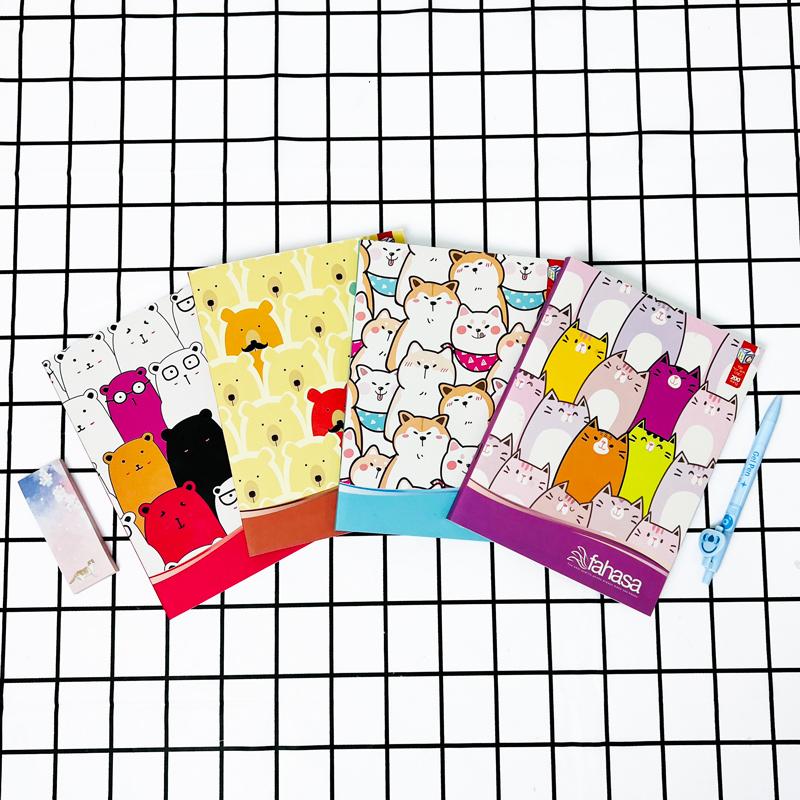 Thiết kế gáy thông minh dễ dàng lật mở các trang khi viết mà không làm bung, hỏng giấy. Bìa vở trang trí hình ảnh những con vật dễ thương, màu sắc nổi bật, tạo