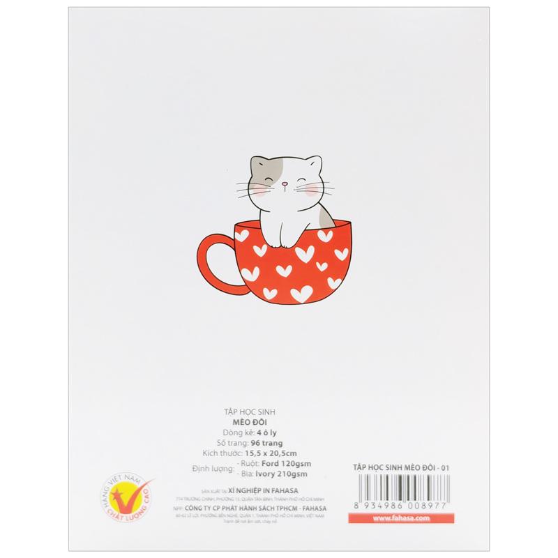 ✨Combo 5 Tập Học Sinh Mèo Đôi - 4 Ô Ly 96 Trang 120gsm - Fahasa 02 (Mẫu Bìa Giao Ngẫu Nhiên)
