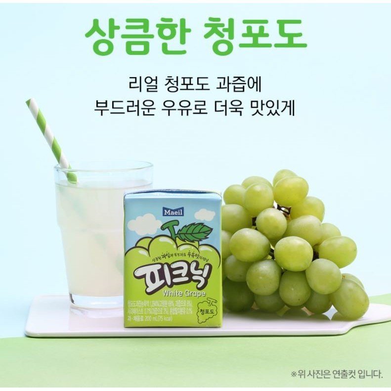 Nước Picnic vị nho của Maeil là món nước ép trái cây vị nho kết hợp với sữa. Là món thức uống thơm ngon, bổ dưỡng. Trong nước ép Picnic có chứa nhiều chất xơ hoà tan là thành phần từ nước ép mang lại, đồng thời giúp các bé hấp thụ được thêm nhiều vitamin bổ dưỡng.