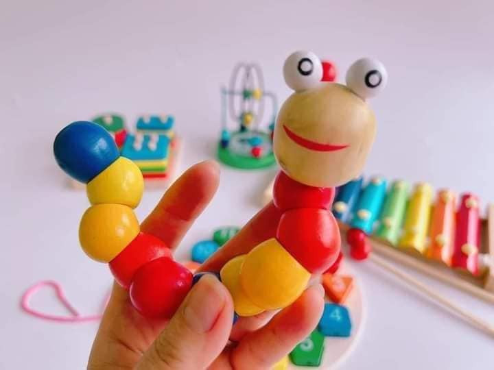 Chất liệu : Gỗ tự nhiên 1 Bộ gồm: 1 bộ đàn 8 âm 1 tháp chồng 7 màu 1 chú sâu gỗ 1 luồn hạt mini 1 xếp hình 1 đồng hồ và Chuỗi luồn