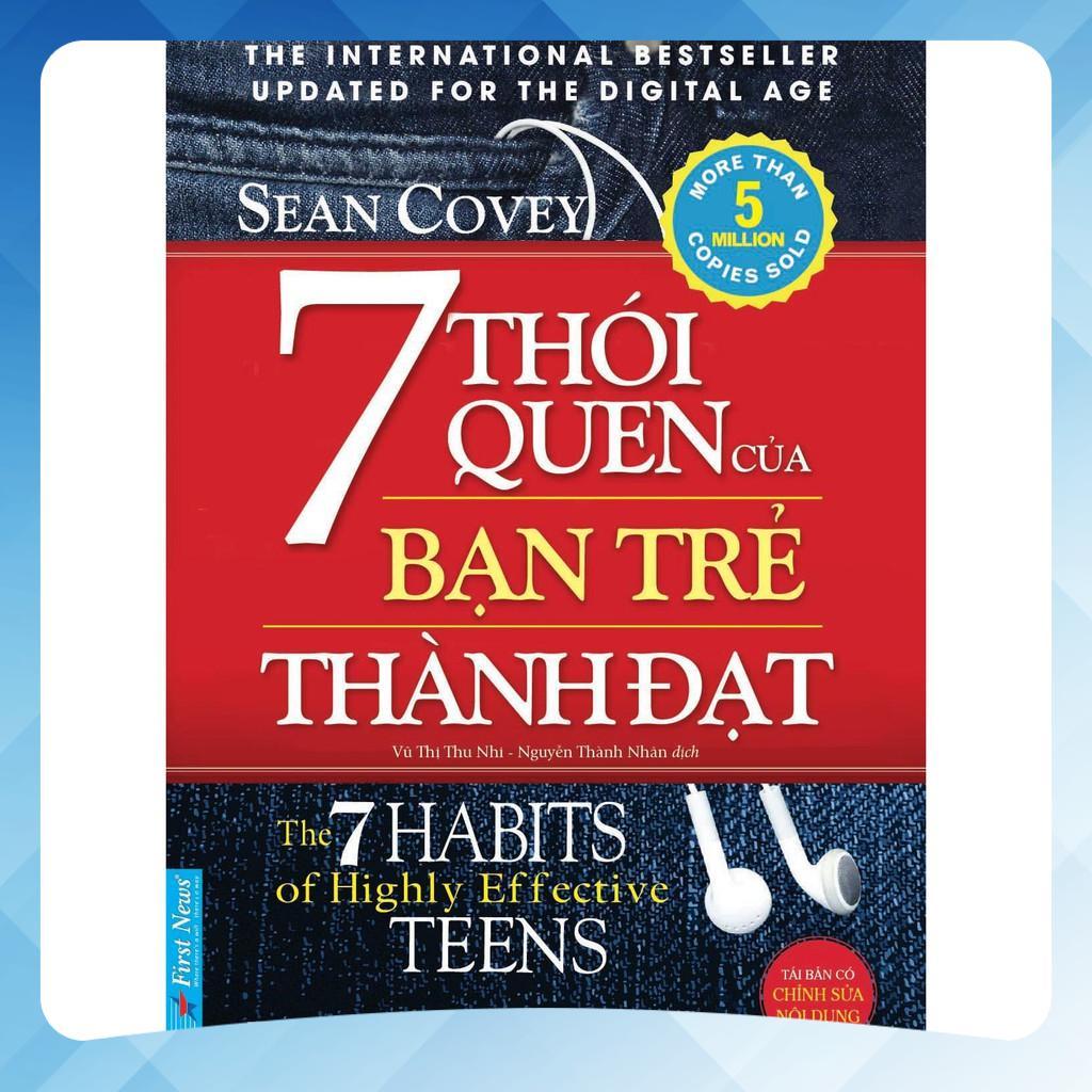 - 7 THÓI QUEN CỦA BẠN TRẺ THÀNH ĐẠT Công ty phát hành: First News - Trí Việt Tác Giả: Sean Covey Ngày phát hành: 2022 Số trang: 200 trang Kích thước: 14.5 x 20.5 cm Nhà xuất bản: NXB Tổng Hợp Xuất xứ: Trong nước Ngôn ngữ: Tiếng Việt Loại bìa: Bìa mềm Giá bìa: 128.000VND Mô tả sản phẩm: 7 Thói Quen Của Bạn Trẻ Thành Đạt được biên dịch từ tác phẩm nổi tiếng The 7 Habits of Highly Effective Teens của tác giả Sean Covey theo hợp đồng chuyển giao bản quyền với Tập đoàn Xuất bản Franklin Covey (Hoa Kỳ). Với phong cách ngắn gọn, vui tươi, dí dỏm, dễ hiểu, nhiều hình ảnh minh họa sinh động và dễ thương, 7 Thói Quen Của Bạn Trẻ Thành Đạt của Sean Covey đã được bạn đọc hoan nghênh và đón nhận nhiệt tình trên khắp thế giới. Đây là một trong những cuốn sách được các đọc giả trẻ yêu thích và đọc nhiều nhất, với số lượng phát hành lên đến hàng triệu bản trong một thời gian ngắn. Quả thật, 7 Thói Quen Của Bạn Trẻ Thành Đạt chính là chiếc la bàn, là kim chỉ nam giúp ta tránh được những thói quen tai hại nhằm xây dựng những thói quen tốt, hướng đến thành công. Đây không chỉ là một cuốn sách để đọc mà còn là một cẩm nang quý giá đưa bạn đến thành công, đạt được ước mơ của mình, xứng đáng với sự tin yêu của bạn bè, người thân, gia đình và xã hội.