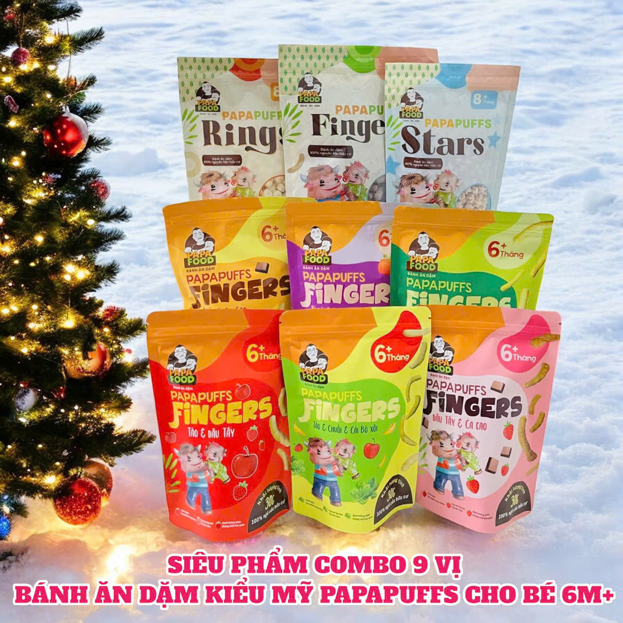 ✨COMBO 9 VỊ BÁNH ĂN DẶM PAPAFOOD PAPAPUFFS - 100% Ngũ Cốc Hữu Cơ