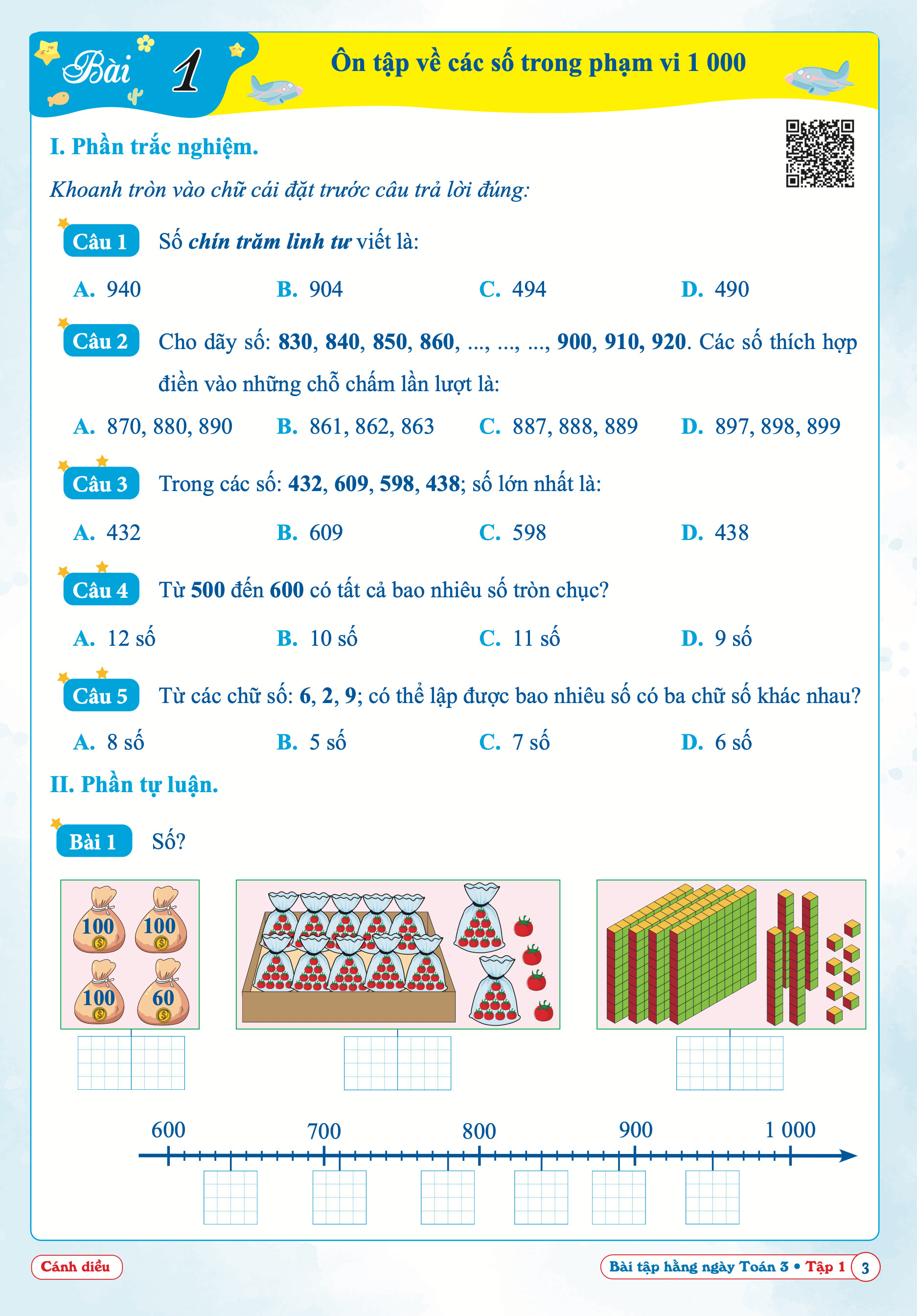 Combo Bài Tập Tuần và Đề Kiểm Tra Toán, Tiếng Việt Lớp 3 (Tùy chọn theo Chương trình SGK mới) Lưu ý: Chọn đúng chương trình học vả kỳ học ở các 2 mục tùy
