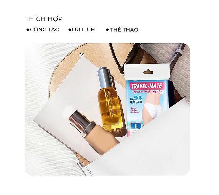 - Tiện lợi cho bạn gái trong những ngày đèn đỏ, trời mưa dầm dề, thời kỳ sinh nở của chị em,... HƯỚNG DẪN CHỌN SIZE Size M: Vòng mông: 84 - 94 cm Size L: Vòng mông: 92 - 100 cm Size XL: Vòng mông: 100 - 115 cm QUẦN LÓT TIỆN LỢI TRAVEL-MATE NỮ