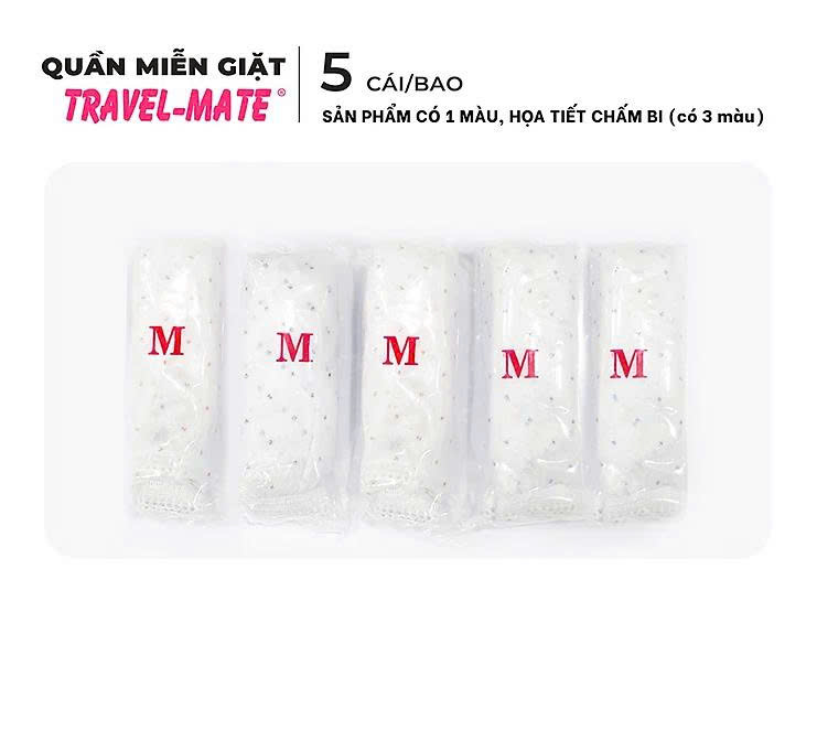 ✨Combo Bao Quần Lót Miễn Giặt Tiện Lợi TRAVEL-MATE Nữ, 5 Cái/Bao Size M: Vòng mông: 84 - 94 cm