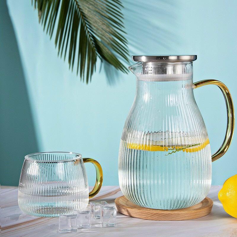 ✨Combo bình đựng nước thủy tinh chịu nhiệt lên tới 400 độ C vân tăm bầu và 6 cốc