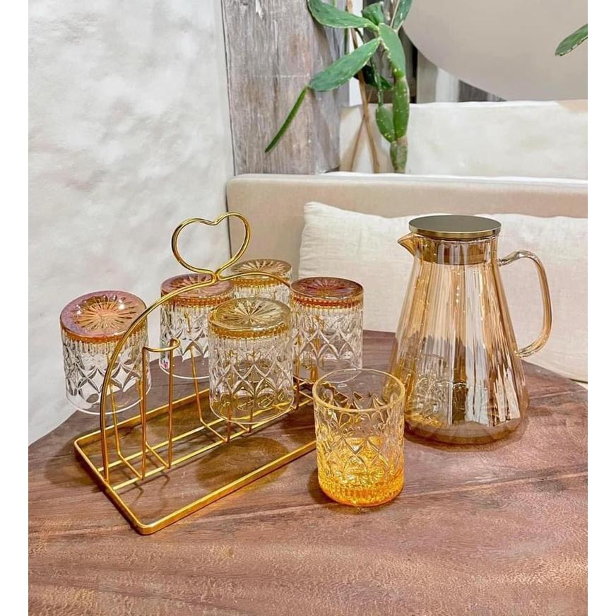 ✨Combo bình thủy tinh đựng nước uống kèm 6 cốc và giá úp