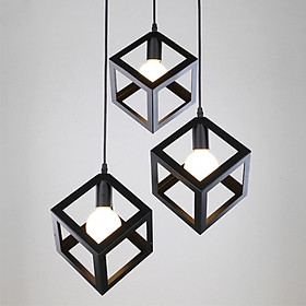 Bộ 3 đèn thả trang trí khối vuông trang trí cao cấp KÈM BÓNG LED Đường kính đèn 22cm. Làm bằng khung sắt sơn tĩnh điện. Phù hợp cho trang trí quán cafe, cửa hàng thời trang.
