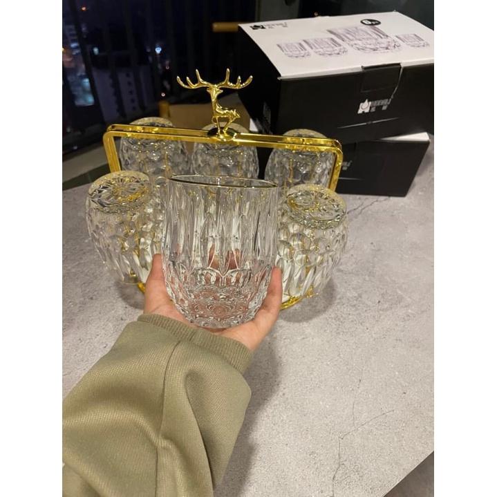 Bộ bình 6 cốc thủy tinh chịu nhiệt mạ vàng cao cấp
