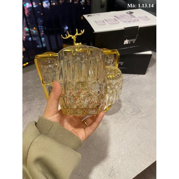Combo Bộ 6 cốc thủy tinh cao cấp kèm giá úp tròn có khay hứng Combo gồm: 1 bình 6 cốc cốc 1 giá úp hươu 1 khay vương miện