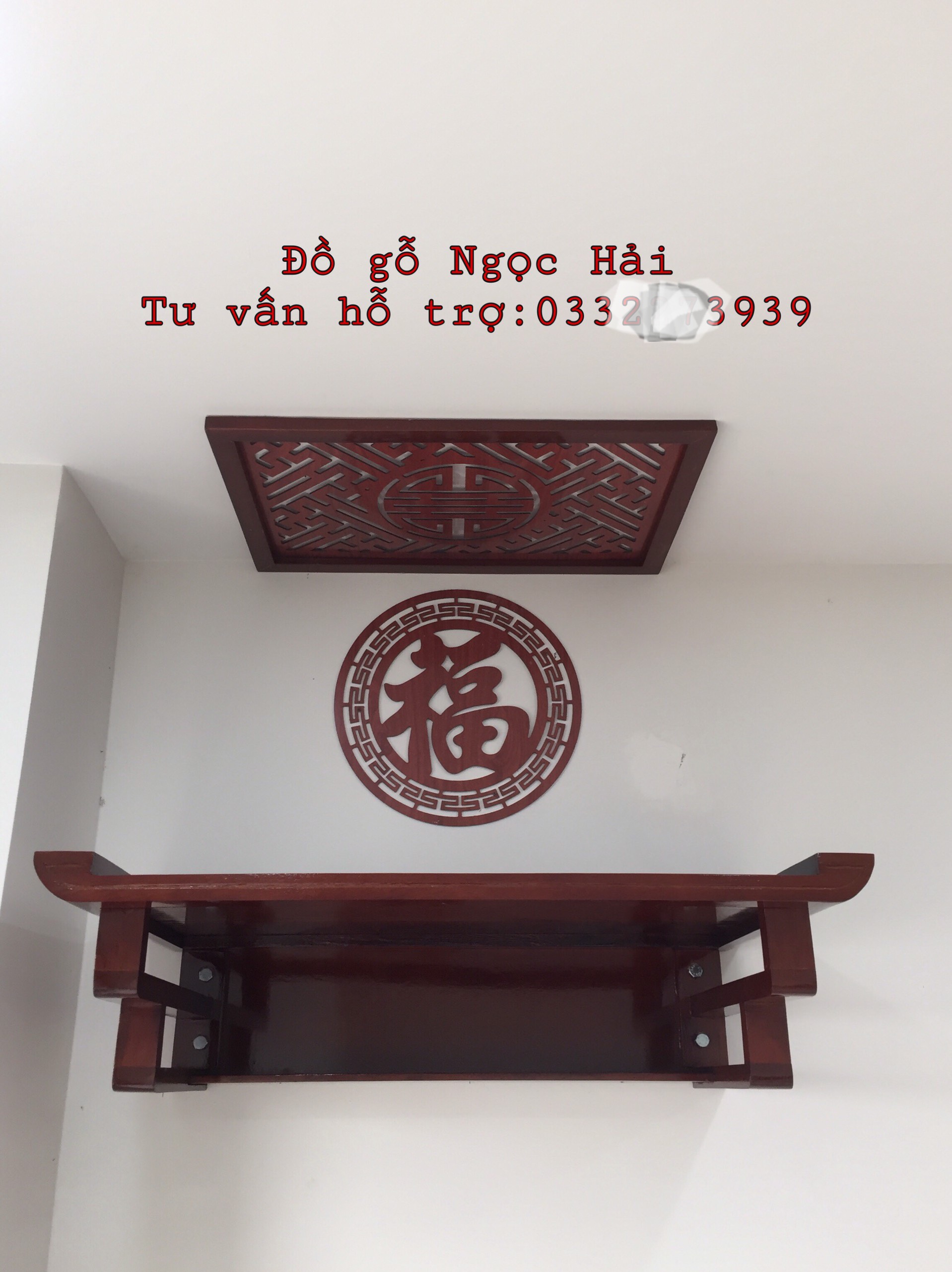 ✨Combo bộ bàn thờ chung cư bằng gỗ sồi + ám khói +chữ phúc hay chữ bất kỳ