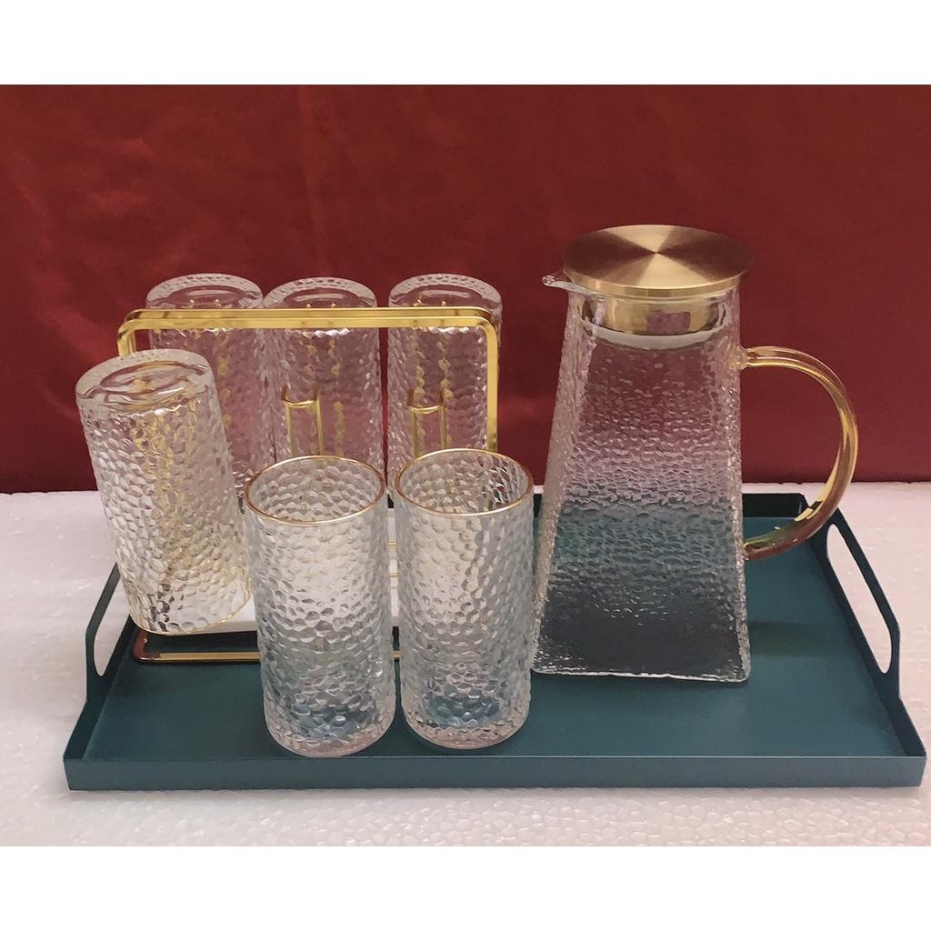 Bộ bình 6 cốc thủy tinh chịu nhiệt mạ vàng cao cấp