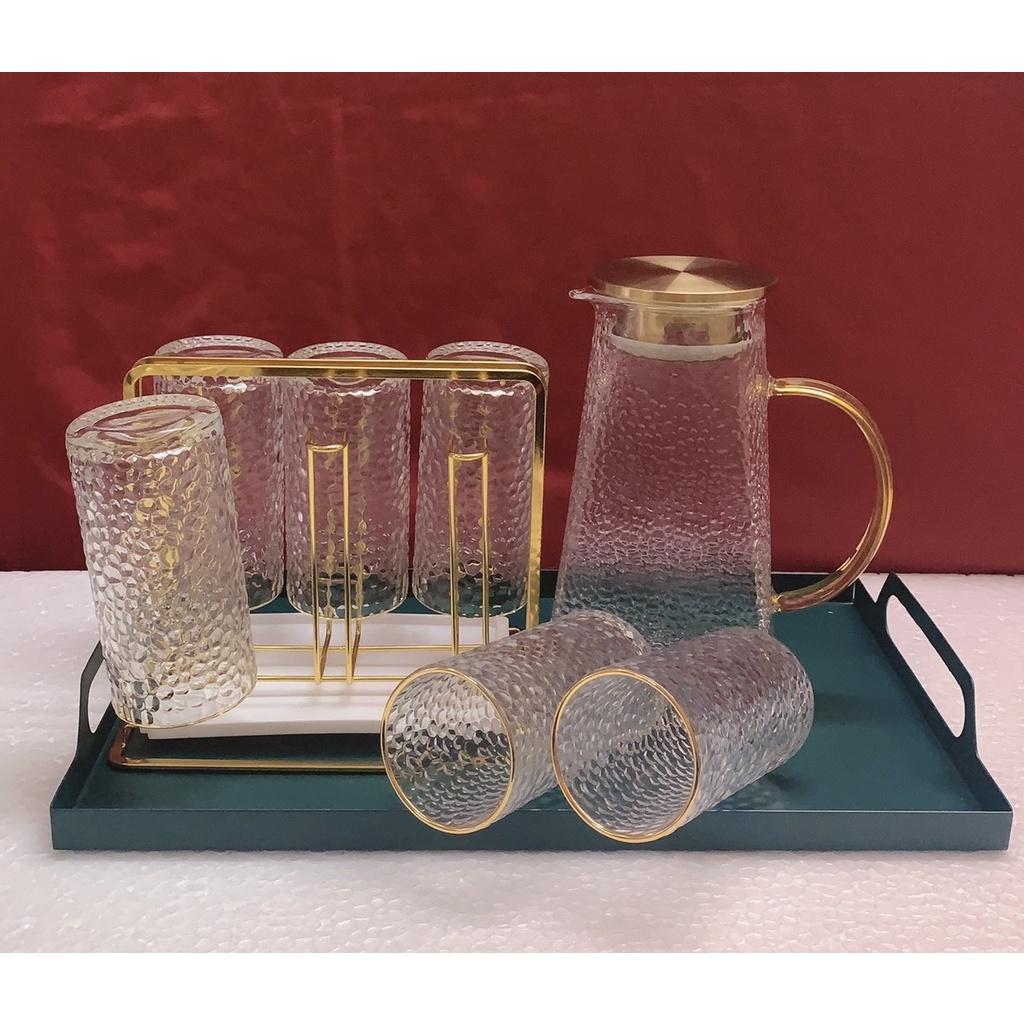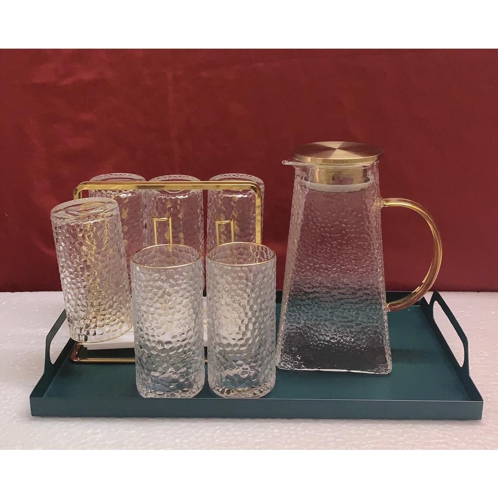 Bộ khay bình nước 6 cốc thuỷ tinh cao cấp