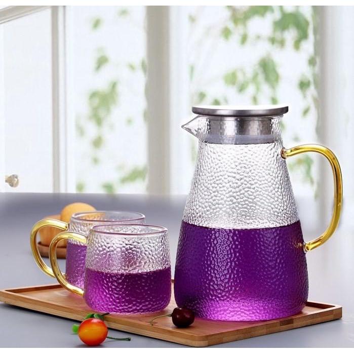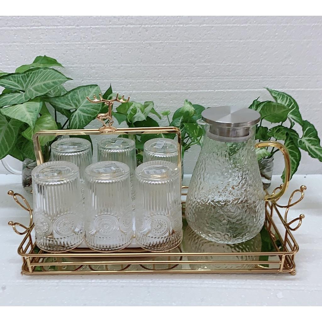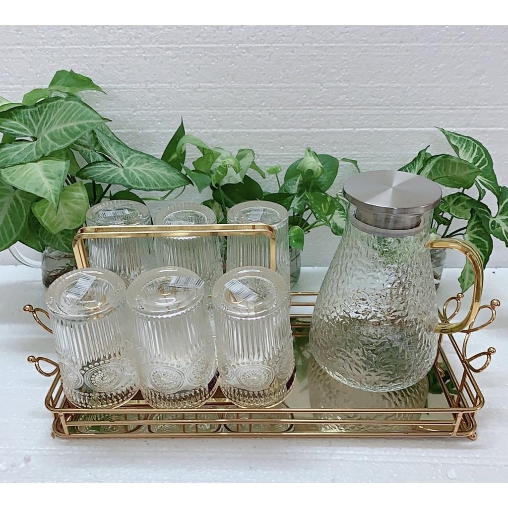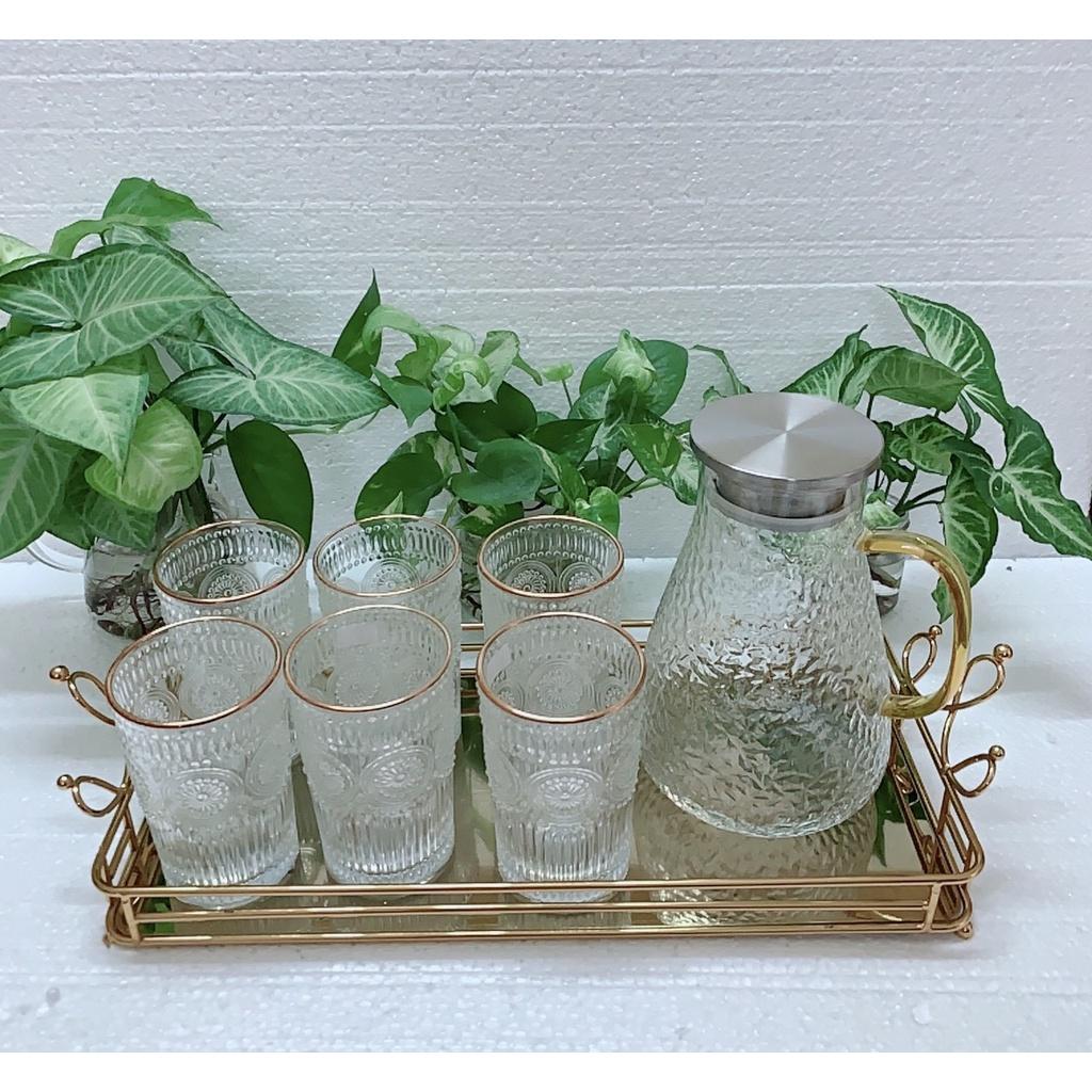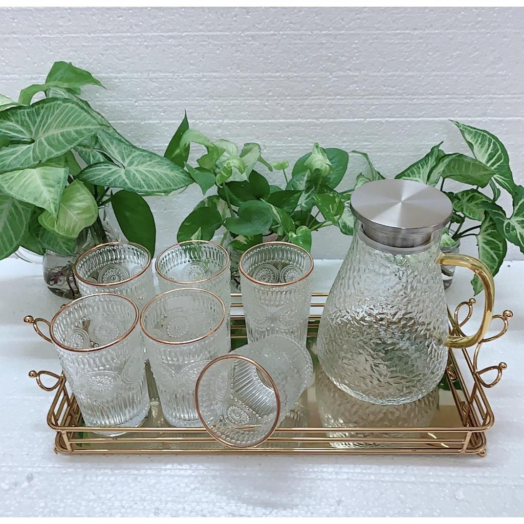 Bộ bình 6 cốc thủy tinh chịu nhiệt mạ vàng cao cấp