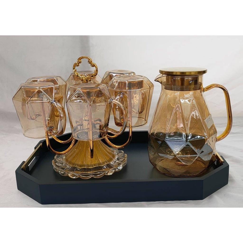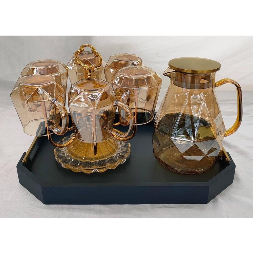 Bộ khay bình nước 6 cốc thuỷ tinh cao cấp
