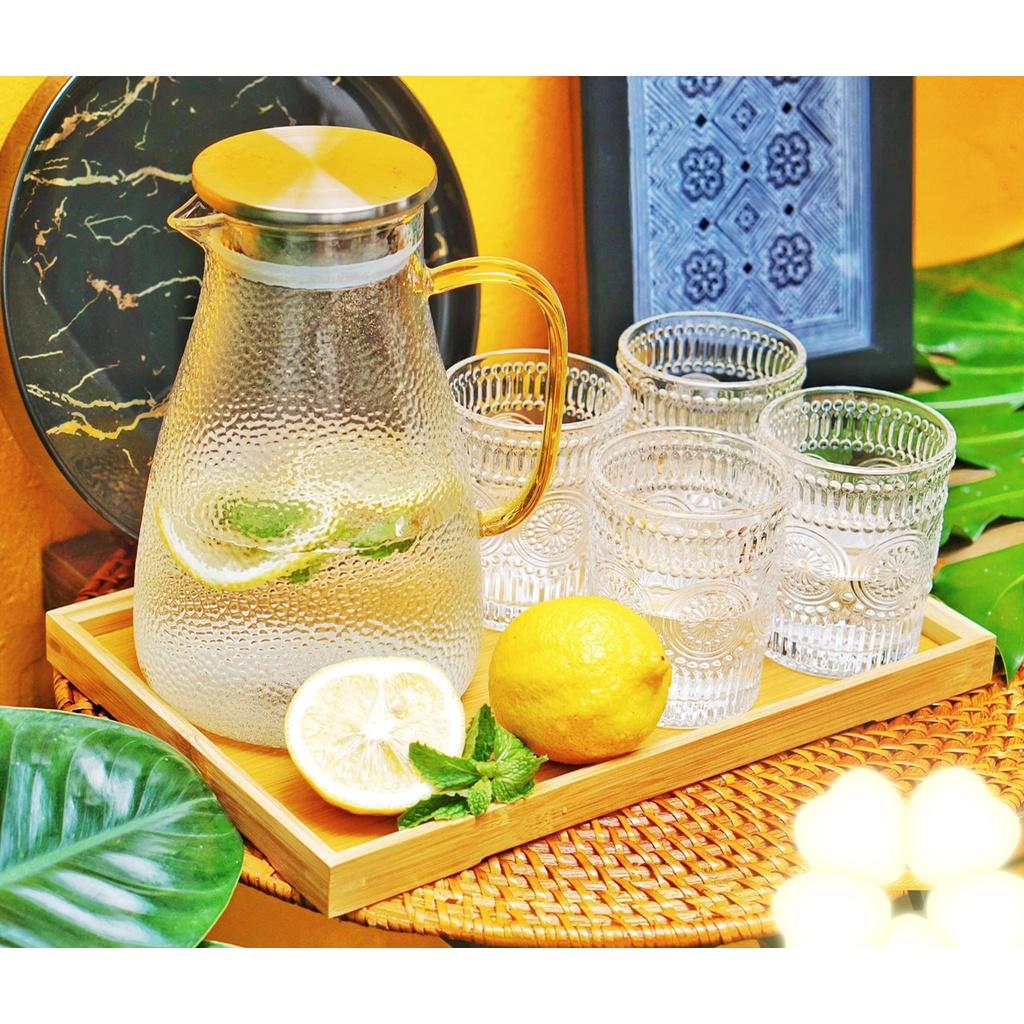SET BÌNH CỐC THỦY TINH KÈM KHAY DECOR | BỘ BÌNH CỐC THỦY TINH KÈM KHAY SANG CHẢNH DECOR PHONG CÁCH RETRO Phong cách Retro thường có cảm giác như một tác phẩm nghệ thuật