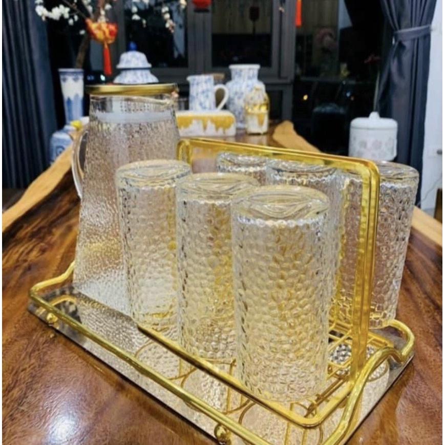 Bộ sản phẩm gồm: 1 bình nước + 6 cốc + Khay + giá úp cốc