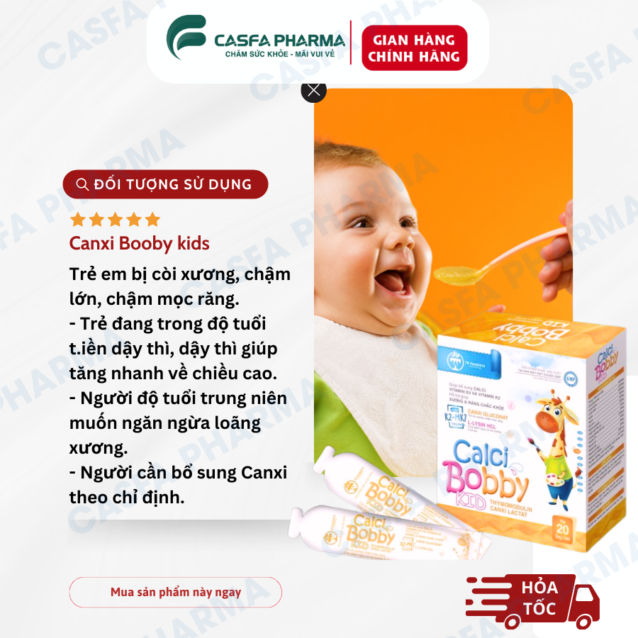 Dành cho sức khỏe xương và răng của bé, giúp tăng chiều cao và phát triển cơ thể mạnh mẽ. Hộp 20 gói * 10ml.